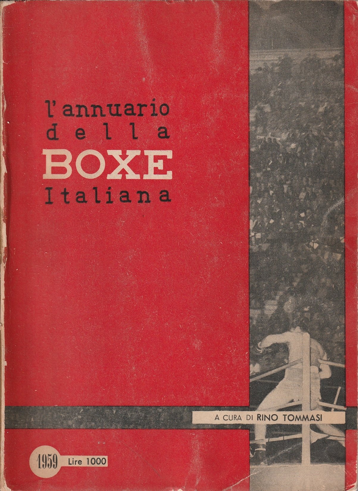 Brossura editoriale, titoli al piatto e al dorso, numerosi ritratti fotografici di pugili in b/n nel testo, contiene una storia dei campionati d'Italia e i records, suddivisi per nazione, dei pugili italiani e stranieri, segni d'uso alla brossura, taglio al dorso con piccola mancanza al piede, all'interno in ottimo stato.