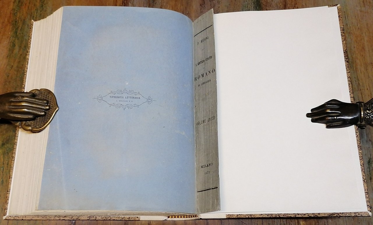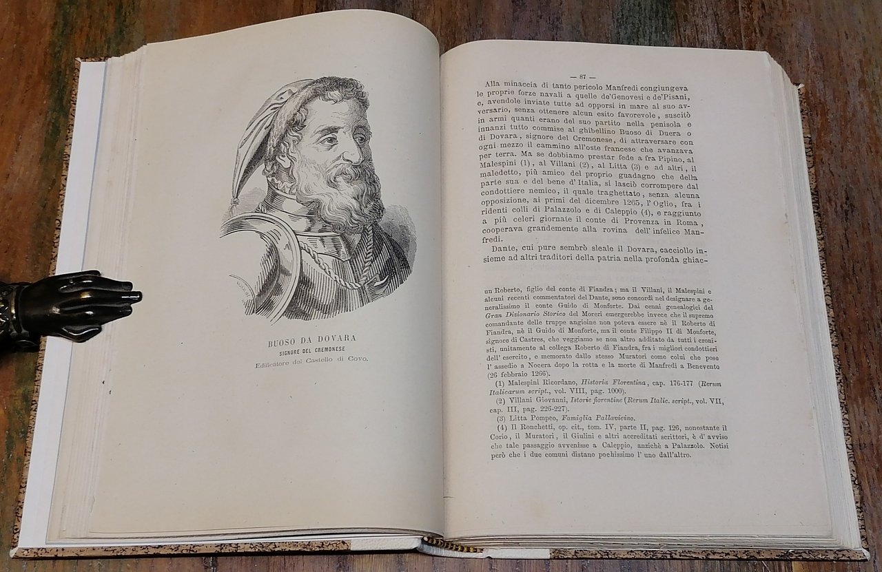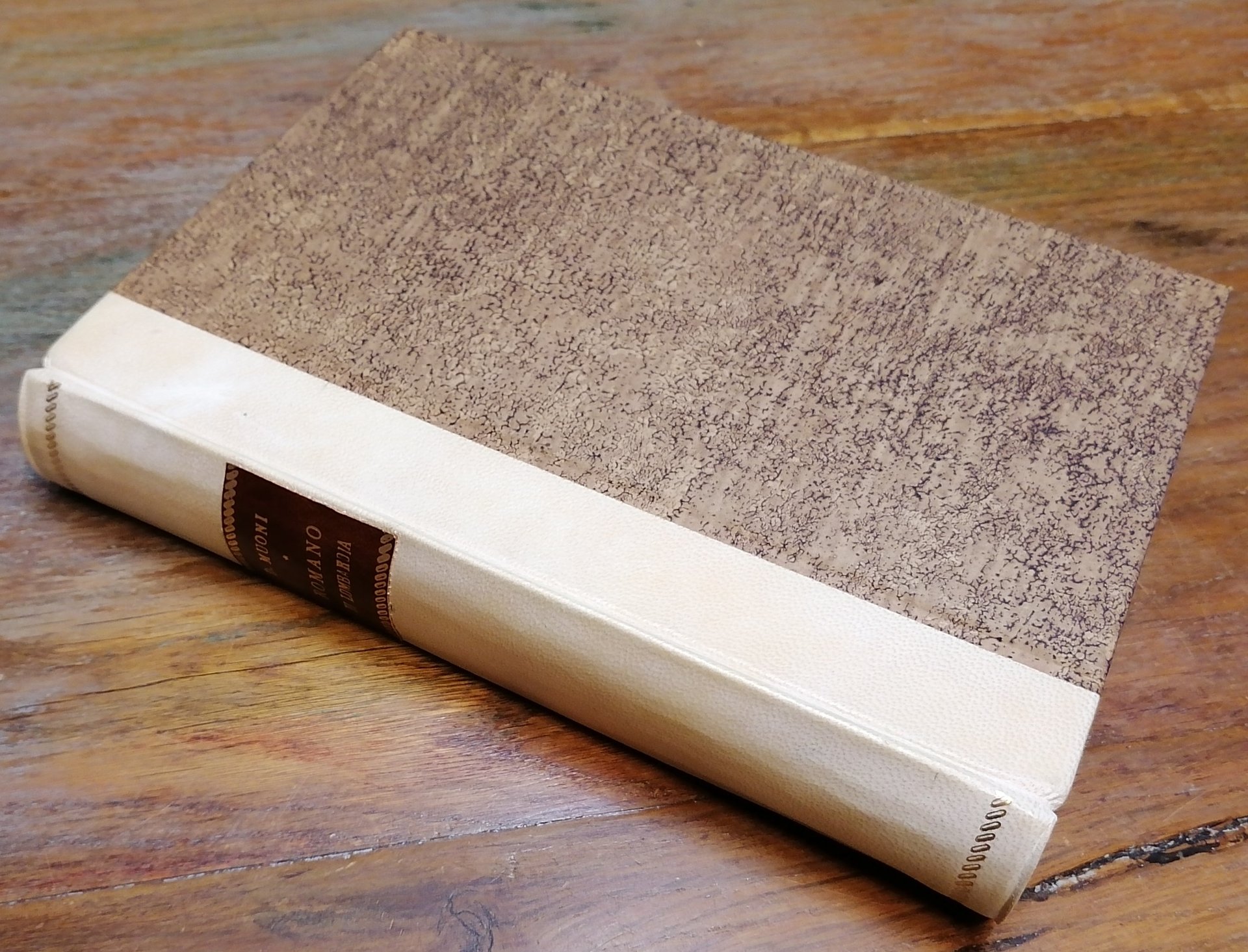 In 8°, legatura in mezza pergamena, al dorso tassello in pelle ocra con titoli in oro, carta decorata ai piatti, conservata l'intera brossura editoriale, pp. 493,(9), con una vignetta figurata posta a testata a pagina 7 e 4 tavole fuori testo con ritratti di personaggi storici. Ottimo stato di conservazione. Edizione originale.