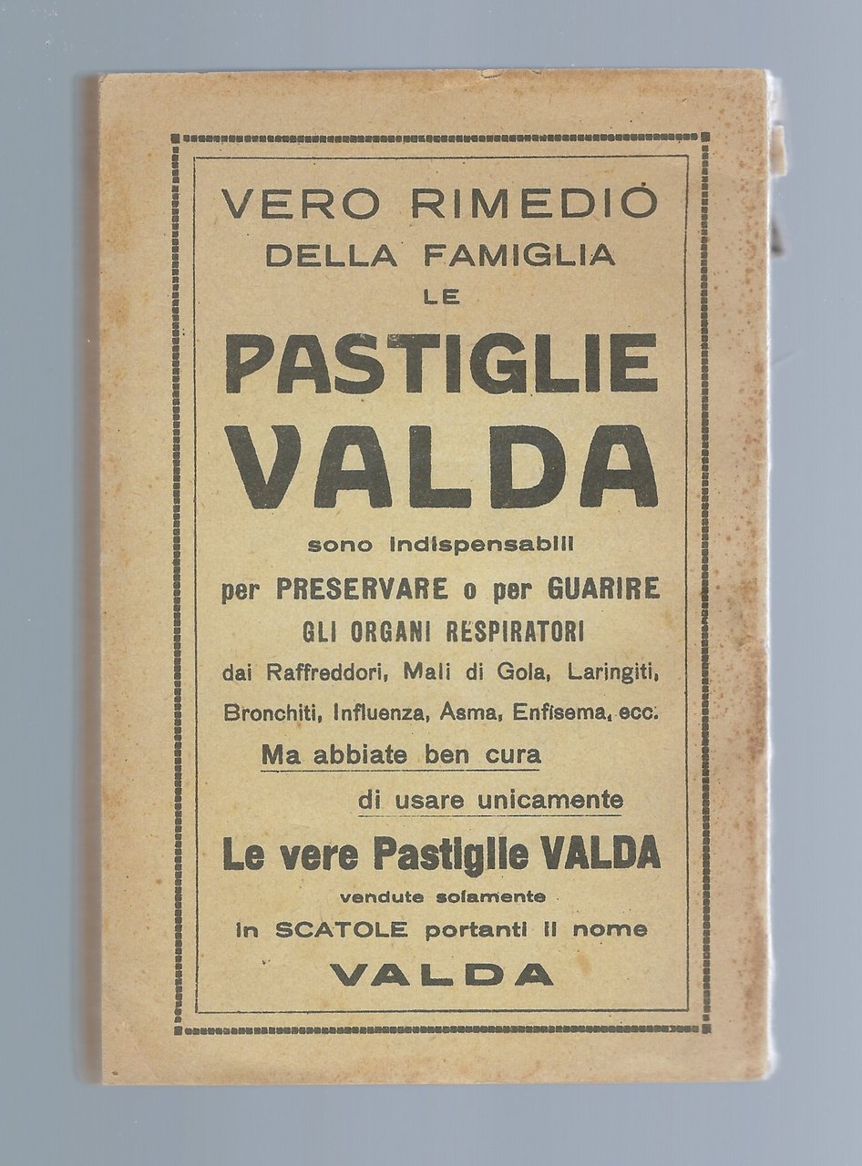 Brossura editoriale illustrata che presenta un strappo al dorso, perciò il piatto anteriore risulta staccato (ma non mancante).
