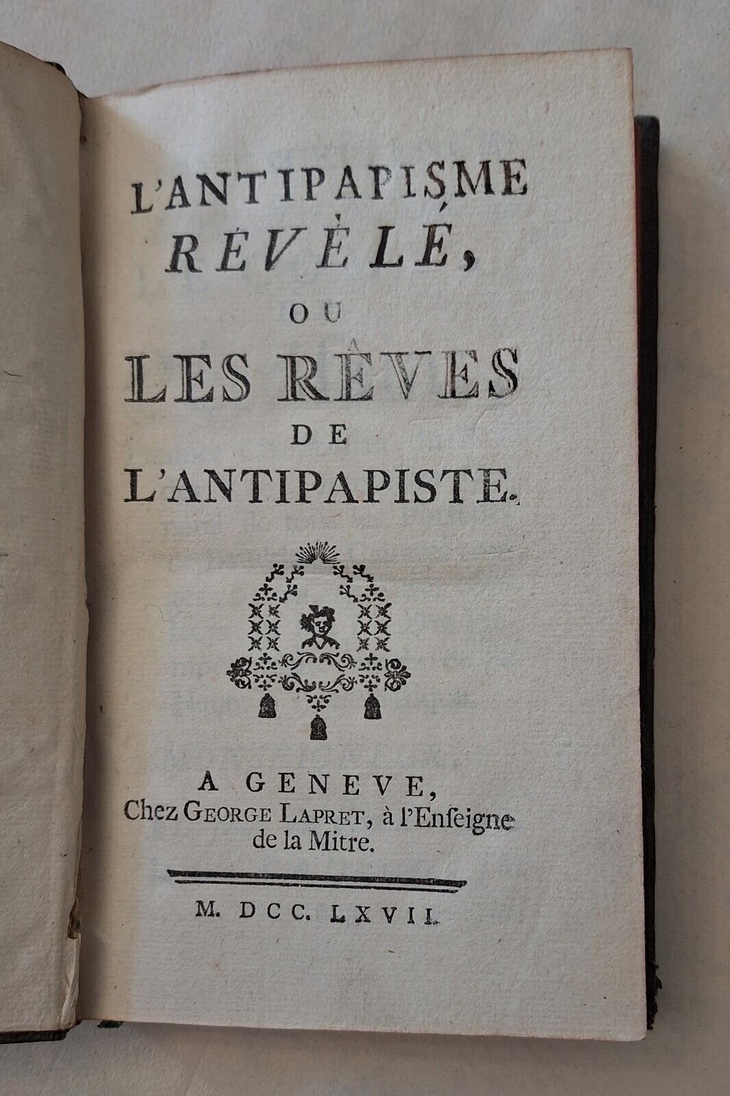 L'ANTIPAPISME REVELE' OU LES REVES DE L'ANTIPAPISTE GENEVE CHEZ G. LAPRET 1767