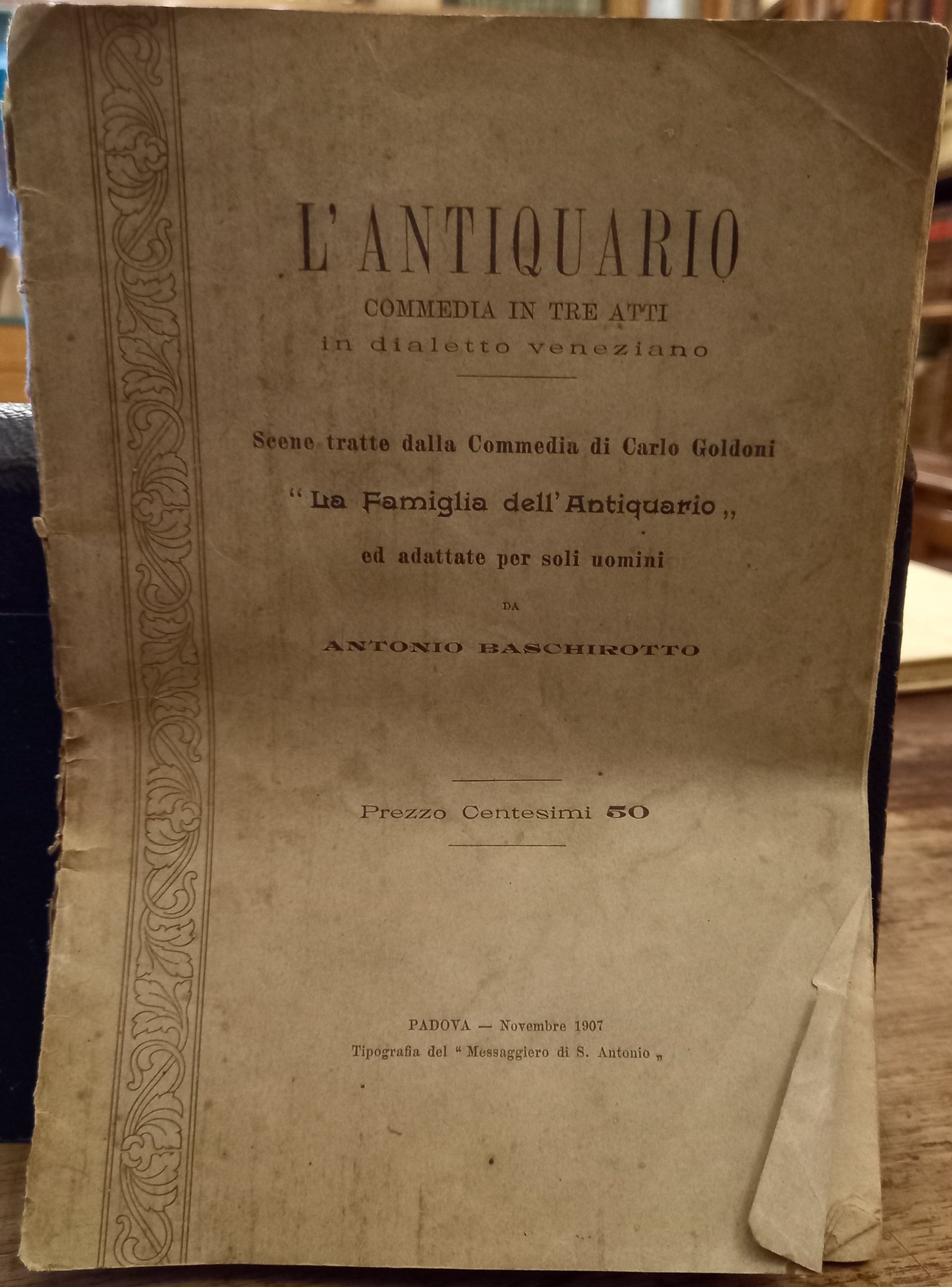 L'antiquario: commedia in tre atti. Scene tratte dalla commedia di Carlo Goldoni La Famiglia dell'Antiquario ed adattate per soli uomini da Antonio Baschirotto