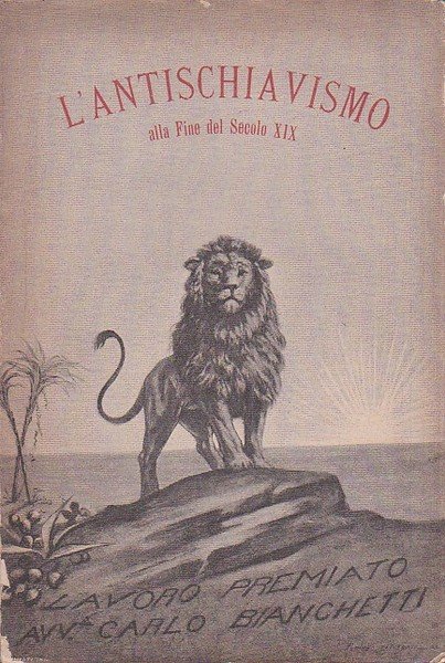 In-8°, pp. VIII, 407, brossura editoriale con illustrazione raffigurante un leone in posa superba su uno sperone roccioso. Ottimo stato. Prima edizione di questa appassionata requisitoria, permeata di sensibilità morale di stampo cattolico, contro lo schiavismo, in tutte le forme e in tutte le nazioni in cui esso continuava a essere praticato alla fine del XIX secolo. Il volume ebbe origini dal concorso internazionale indetto a Parigi nel 1891 dal Cardinale Lavigerie per la migliore opera sul problema della schiavitù.