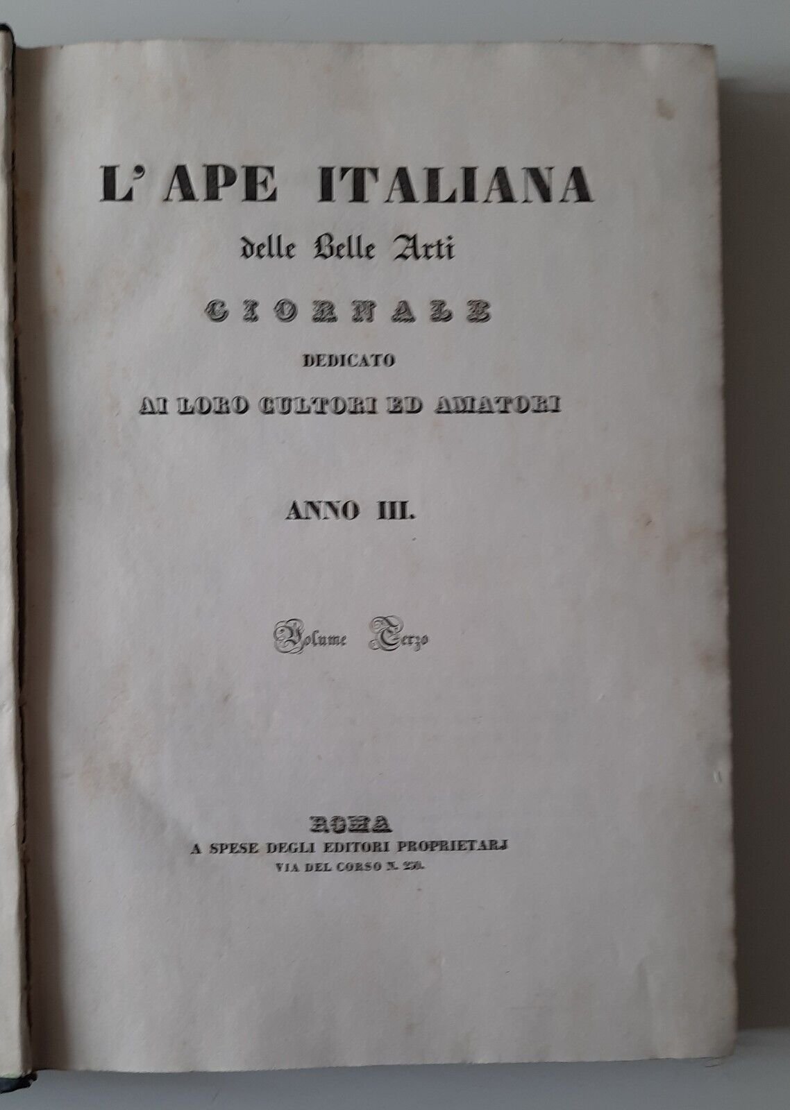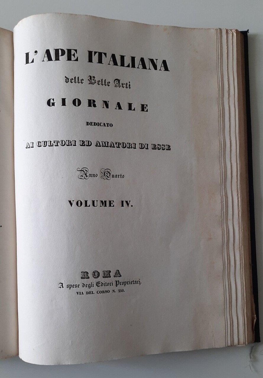 L'APE ITALIANA DELLE BELLE ARTI VOL. 3 - 4 ROMA TIP. C. PUCCINELLI 1837 - 1838
