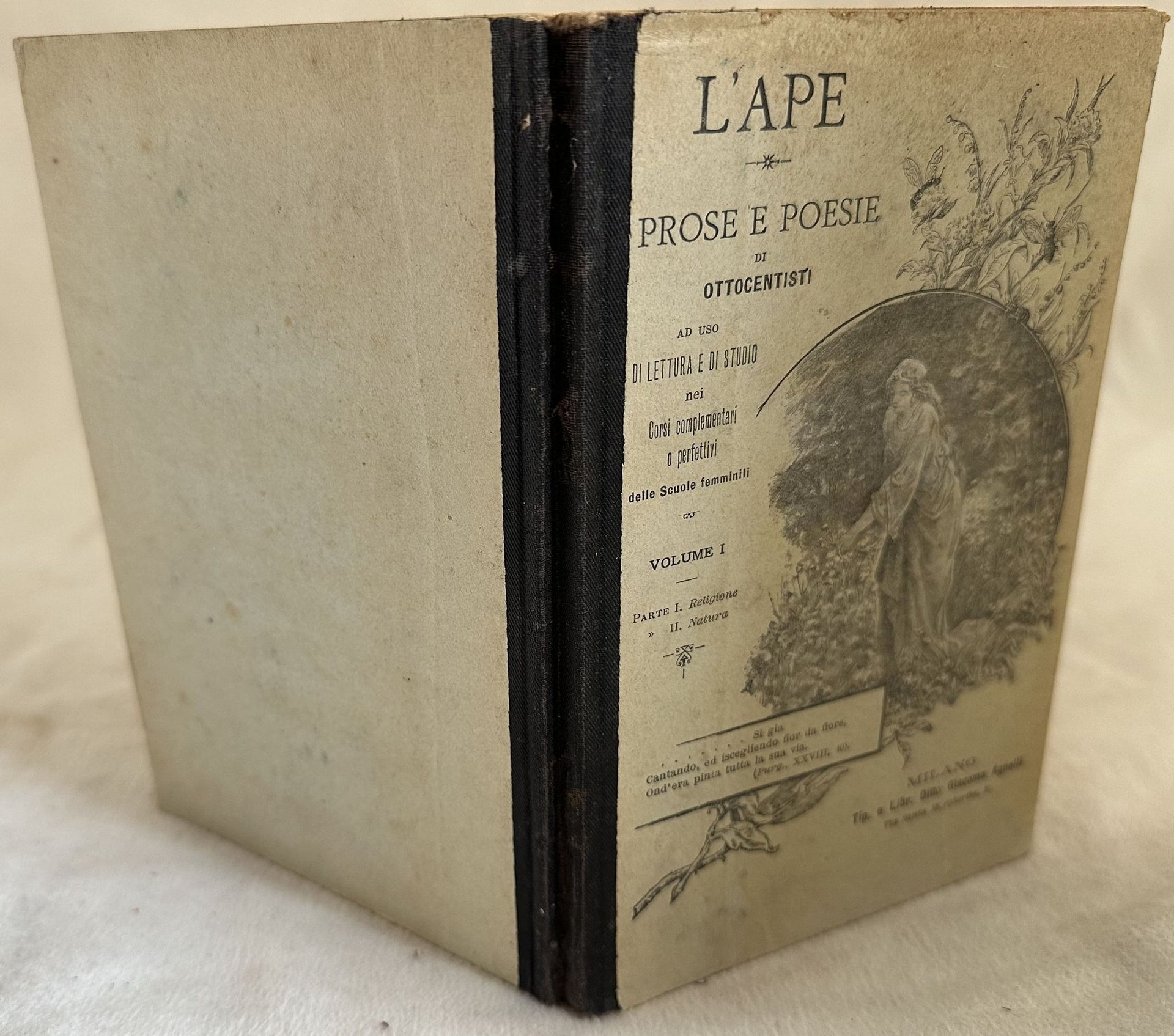 L'APE PROSE E POESIE DI OTTOCENTISTI PER USO DI LETTURA E DI STUDIO NEI CORSI COMPLEMENTARI O PERFETTIVI DELLE SCUOLE FEMMINILI VOLUME I PARTE I RELIGIONE PARTE II NATURA