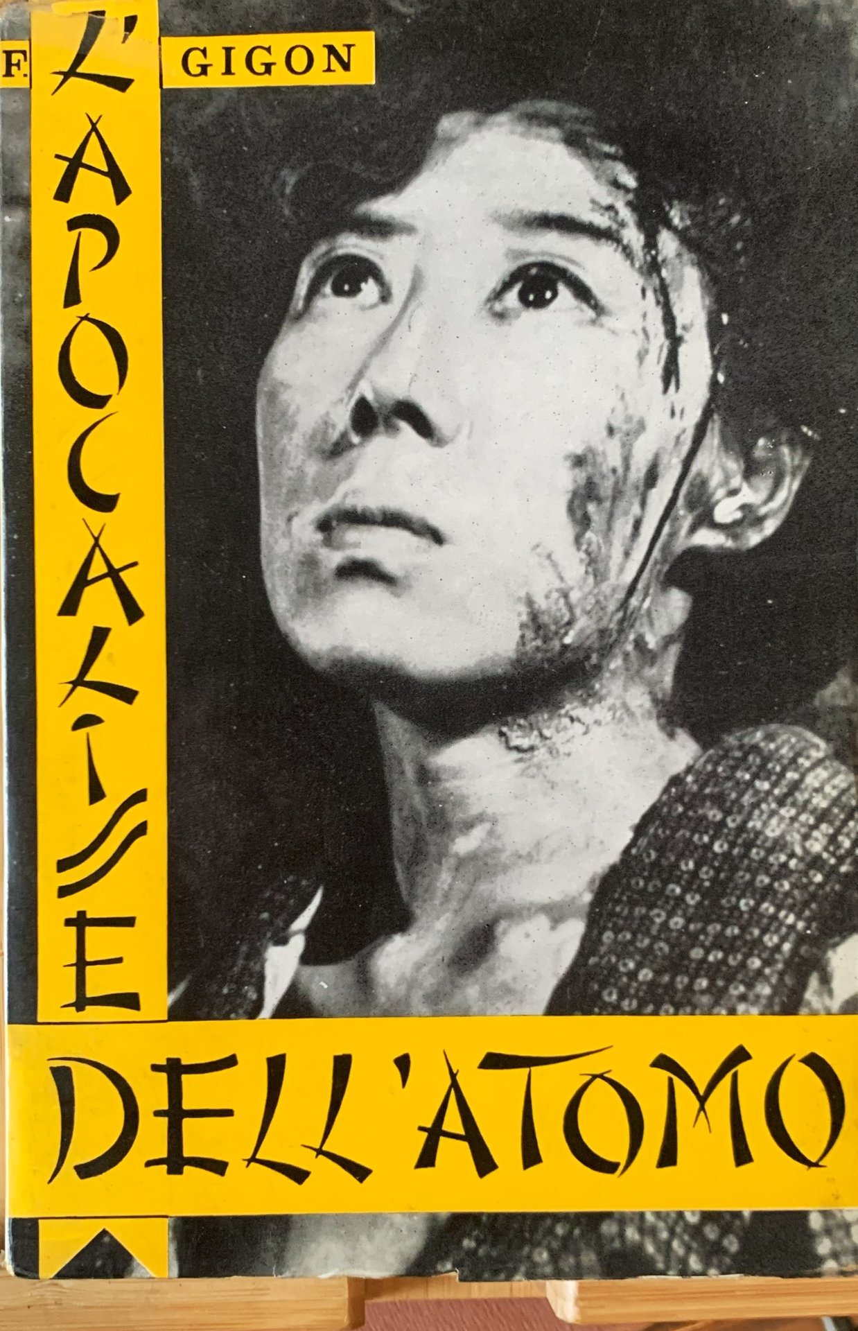 I ed. italiana (I ed.: "Apocalypse de l'atome", Paris-F, Éditions del Duca 1958. Traduzione di Piero Monaci. Collana "Documenti". "L'ultima opera di Fernand Gigon (. . .) è il riassunto di un'inchiesta soscienzosa e completa condotta nel corso di tre mesi negli ospedali di Hiroshima e Nagasaki" (da "L'opera", p. 11). In-8 piccolo, pp. 308, brossura con i piatti illustrati con due immagini fotografiche in b/n (atomizzati, in particolare al primo piatto, immagine di una donna con il viso devastato dagli "artigli del diavolo"). Con immagini fotgrafiche in b/n in tavole patinate f.t. e alcune altre nel testo. Stato buono (lieve usura della copertina - pagine ingiallite, in particolare ai margini). Indice: L'autore - L'opera - La stampa - Prefazione dell'autore; F. G. - Gli altri (Einstein, co-autore della bomba "A", parla del suo sgomento agli amici giapponesi - "Sarei pronto a rifarlo, se fosse necessario", ha detto l'aviatore che gettò la bomba su Hiroshima - dall'indifferenza al rimorso - Bomba atomica e prigione) - Hiroshima (La "Pika" o bomba "A" ha mobilitato il sole, il tuono e il fuoco - Il chilometro della morte totale prefigura la sorte del mondo nell'èra atomica - Cronache dall'inferno, ossia: il dramma di Hiroshima come è stato visto dai bambini - I quattro collegiali che vollero morire come eroi leggendarii - Il signor Hirohata riesce a salvare miracolosamentee il ritratto dell'imperatore attraverso la città in fiamme - Alla dolorosa lista delle malattie degli uomini Hiroshima ha aggiunto la malattia atomica - le radiazioni atomiche aggravano la leucemia o cancro del sangue, malattia inguaribile (Dov'è la tua vittoria, o morte?) - Il viso devastato dagli artigli del diavolo, le pulzelle di Hiroshima rinascono alla vita (Undici anni di solitudine - Chirurgia atomica) - La bomba atomica alimenta in molti stranieri un complesso di colpa - La Hiroshima di oggi si dedica alla pace e al "base-ball" (Liquidazione di riccordi - Scienza e prudenza - la vita rifiorisce) - Dalle "atomic girls" al "Diario di Hiroshima", l'atomo regna su tutte le arti del Giappone (Sul fronte letterario - L'atomo dinanzi l'obbiettivo fotografico - Canzoni e dischi)) - Nagasaki (L'ex ingegnere Enemon Kawaguchi ha visto cadere tutt'e due le bombe atomiche (L'arrivo a Nagasaki) - A Nagasaki la "Pika" si chiama "Gembaku". Essa esplose a 490 metri sopra la città - Nagasaki dimenticata da Dio e dagli uomini ha riparato le sue rovine - Dopo dodici anni la vecchia atomizzata di Shiruyama rifiuta di scendere a Nagasaky) - Un porto chiamato Yaizu (In pieno Pacifico una pioggia argentea copre il "Drago della Fortuna" e contamina i suoi ventitrè marinai - Il marinaio Masuda, atomizzato a Bikini, piange perché non potrà mai avere bambini - Kuboyama San, la veddova del marinaio, è la rappresentante della coscienza atomica - Dopo Bikini, 500 tonnellate di pesci radioattivi da distruggere scatenano il panico (Dichiarazioni di uno scienziato)) - Presenza dell'atomo (Gli scienziati all'erta 24 ore su 24, svelano la radioattività delle acque e dell'aria (Come vengono rivelate le esplosioni) - A tremila chilometri dal luogo dell'esplosione, le bombe H contaminanoo riso, tè, grano e latte - Tumulti, scioperi della fame, menzogne, comizi, tutto è buono per protestare ccontro gli esperimenti atomici (Proteste ambulanti) - A Tokaimura il Giappone si riconcilia con l'atomo).