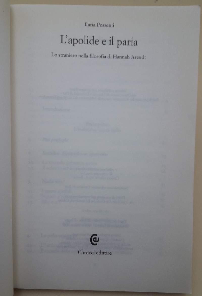 L'APOLIDE E IL PARIA-LO STRANIERO NELLA FILOSOFIA DI HANNAH ARENDT(2002)