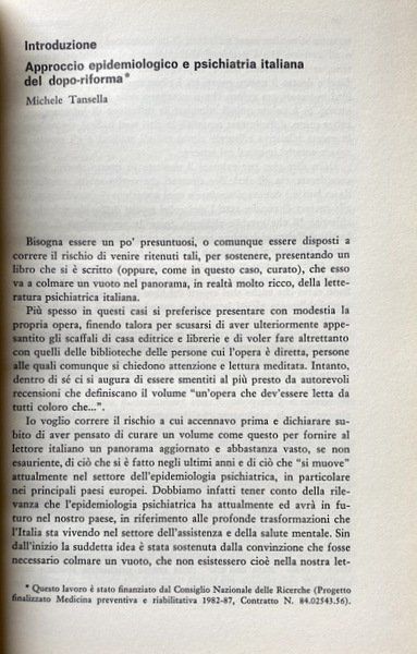 L'APPROCCIO EPIDEMIOLOGICO IN PSICHIATRIA. A CURA DI MICHELE TANSELLA