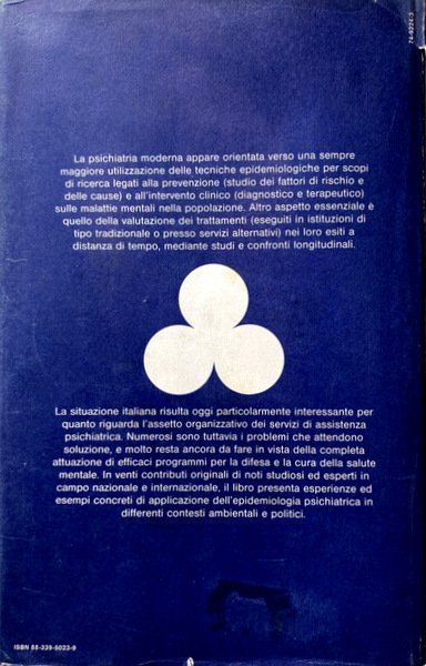 Soggetti: Medicina, Psicologia medica, Psichiatria, Epidemiologia, Manuali, Neurologia, Saggi, Scienze psichiatriche, Diagnostica, Raccolte, Scritti, Psicopatologia, Teorie, Metodi, Pratiche, Valutazione, Diagnosi, Disturbi psichici, Malattia mentale, Libri universitari, Libri Vintage Fuori catalogo, Riforma psichiatrica, Riabilitazione psicosociale, Terapie, Psicofarmaci, Cure, Salute pubblica, Ospedali psichiatrici, Pazzia, Schizofrenia, Ex-manicomi, Manicomio, Franco Basaglia, Servizi sociali territoriali, II Registro Psichiatrico di Verona-Sud, Studi, Ricerche, Bibliografia, Opere generali, Classici, Letteratura psichiatrica, Degenza, Storia, Problematiche, Archibald Cochrane, Metodo scientifico, Fattori economici, Public health, Trattamenti, Individual health, Psichiatria epidemiologica, Politica sanitaria, Eziologia, Analisi, Classificazione, Ambulatori, Indagini statistiche, Registri psichiatrici, Deontologia, OMS, Problemi psicosociali, Sistema informativo, Inghilterra, Salford, Misurazioni basilari, Censimento, Prevalenza, Assistenza, Pazienti psichiatrici, Ricoverati, Malattie croniche, Olanda, Schizofrenia, Disagio sociale, Popolazione, Morbilità psichiatrica, Gran Bretagna, Famiglia, Storia familiare, Quartieri, Risultati, Conclusioni, Fattori di rischio, Disturbi affettivi, Depressione, Bipolarismo, Sindrome bipolare, Adolescenza, Bambini, Mannheim, Casi, Disturbi infantili, Anziani, Demenza senile, Intervento farmacologico, Controllo, Dopo-riforma, Weissmann, Veneto, Stevenson, Tossicodipendenza, Tennant, Personalità, Psicosi, Regier, Murray, Jablensky, Harris, Galimberti, Crepet, Casi concreti, Medicine, Medical psychology, Psychiatry, Epidemiology, Manuals, Neurology, Essays, Psychiatric sciences, Diagnostics, Collections, Writings, Psychopathology, Theories, Methods, Practices, Evaluation, Diagnosis, Psychic disorders, Mental illness, University books, Out of print books, Reform psychiatric, Psychosocial rehabilitation, Therapies, Psychiatric drugs, Cures, Public health, Psychiatric hospitals, Insanity, Schizophrenia, Asylum, Territorial social services, II Psychiatric Register, Studies, Research, Bibliography, General works, Classics, Psychiatric literature, Hospitalization, History, Problems, Scientific method, Economic factors, Treatments, Individual health, Epidemiological psychiatry, Health policy, Etiology, Analysis, Classification, Outpatient clinics, Statistical surveys, Deontology, Psychosocial problems, Information system, England, Basic measurements, Census, Prevalence, Assistance, Psychiatric patients, Inpatients, Chronic diseases, Netherlands, Schizophrenia, Social distress, Population, Psychiatric morbidity, Great Britain, Family, Family history, Neighborhoods, Results, Conclusions, Risk factors, Affective disorders, Depression, Bipolarism, Bipolar syndrome, Adolescence, Children, Cases, Childhood disorders, Elderly, Senile dementia, Pharmacological intervention, Control, Post-reform, Drug addiction, Personality, Psychosis, Concrete cases