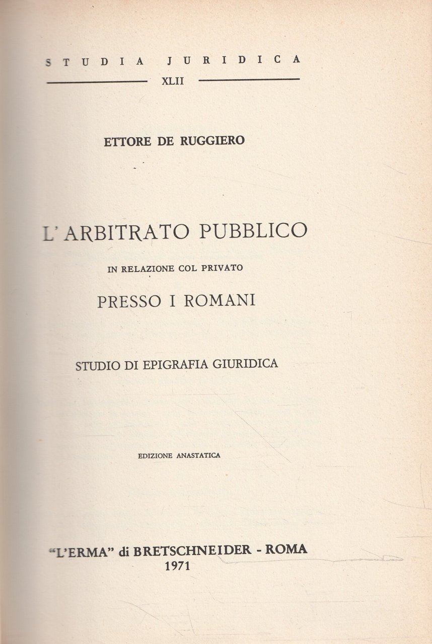 L'arbitrato pubblico in relazione col privato presso i Romani. Studio di epigrafia giuridica