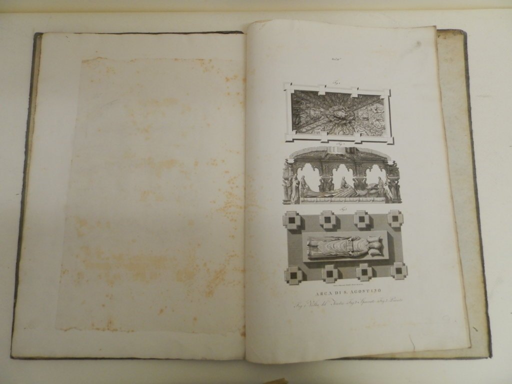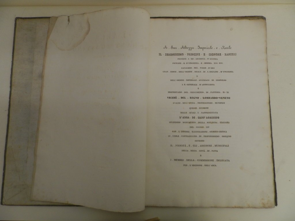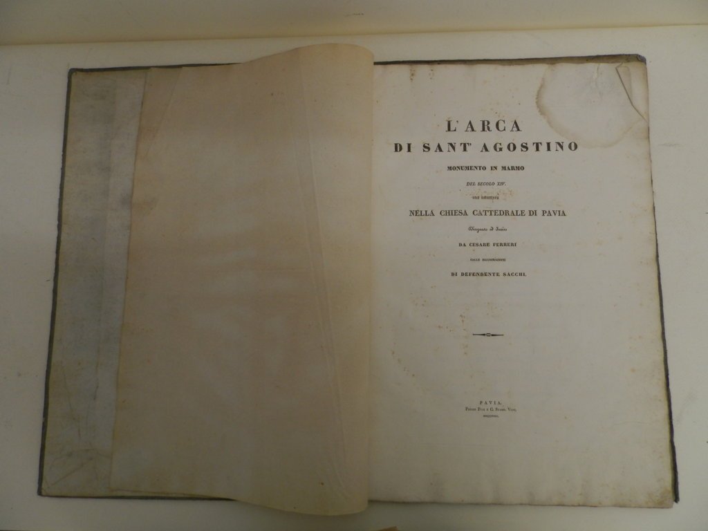 L'arca di Sant'Agostino. Monumento in marmo del secolo XIV ora esistente nella chiesa cattedrale di Pavia. Disegnato ed inciso da Cesare Ferreri colle illustrazioni di Defendente Sacchi.