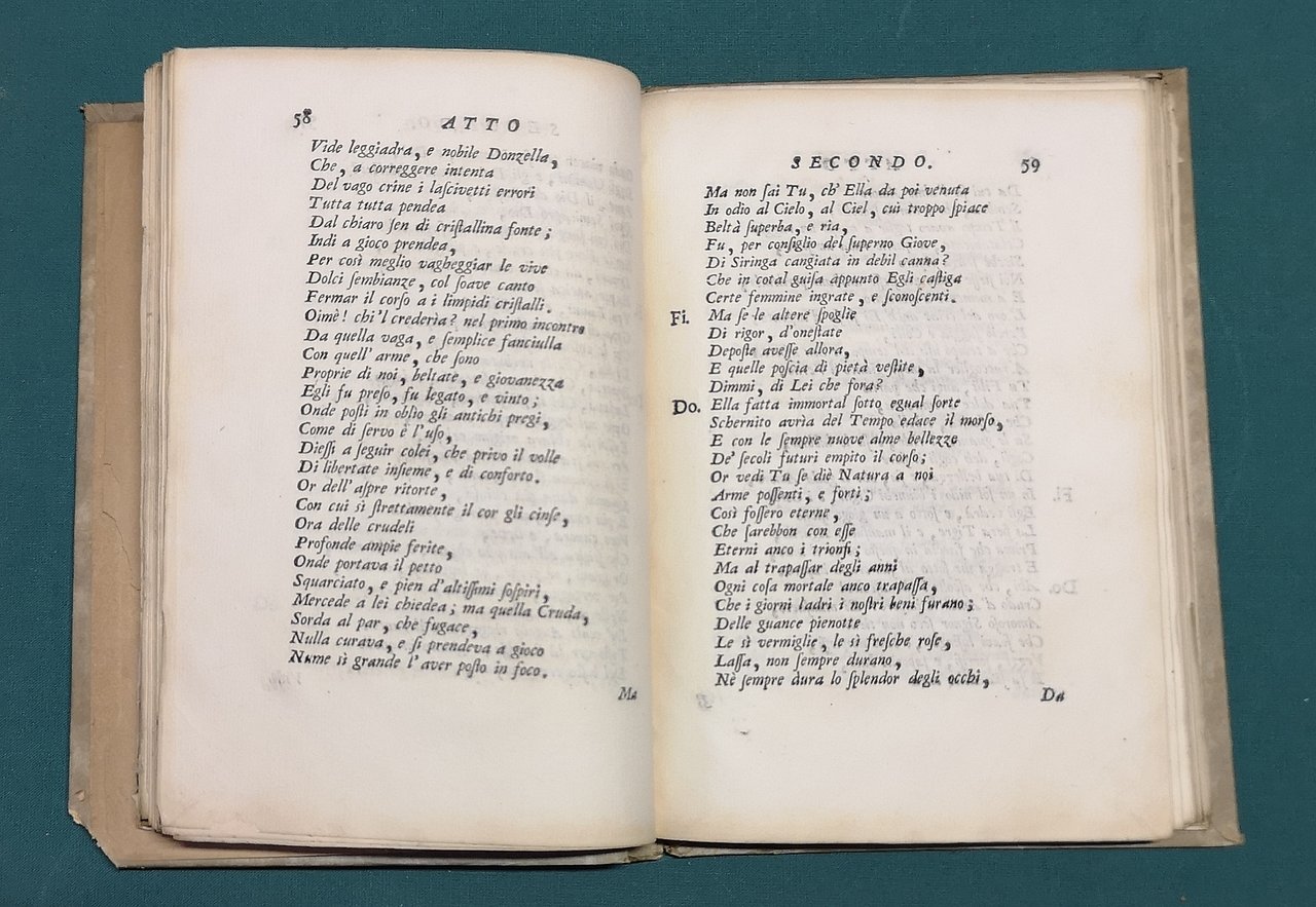 >in-4, pp. XII, 176, leg. cart. poster., tass. in pelle con tit. oro sul piatto super. Con 7 tavole a piena pag. f.t., assai belle, firmate da Giuseppe Pini, l'incisore di corte dei Farnese. Seconda e rara edizione, che seguì immediatamente la prima (1712), introvabile, di cui vennero soppressi tutti gli esemplari per gli innumerevoli errori commessi. Segue il testo una curiosa ''Protesta dell'Autore a chi ha letto'', in difesa dell'opera e dell'edizione. Il nobile parmigiano P. G. Balestrieri sviluppa qui il più classico dei soggetti adoperando con maestria ed equilibrio i versi sciolti; il risultato è un'opera, seppur scontata nei temi, di grande raffinatezza. Esempl. a pieni margini (ex-libris Sordelli). Allacci 101. Salvioli 336.