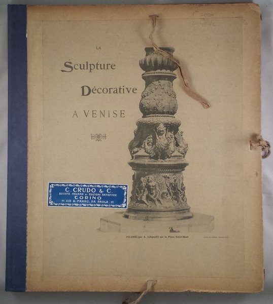 In-4 2 cartelle 50 c. (di tav.); 51-113 c. (di tav.) Non rilegate, ma raccolte in due cartelle editoriali in mezza tela, chiusa da laccetti telati; sul piatto anteriore tassello "C. Crudo & C. Società Italiana di Edizioni Artistiche Torino 11, via S. Franc. Da Paola, 11". 113 tavole rappresentanti i dettagli architettonici più rilevanti della città di Venezia. Le cartelle e le tavole sono in ottime condizioni. L'opera è collazionata e completa. LINGUA FRANCESE