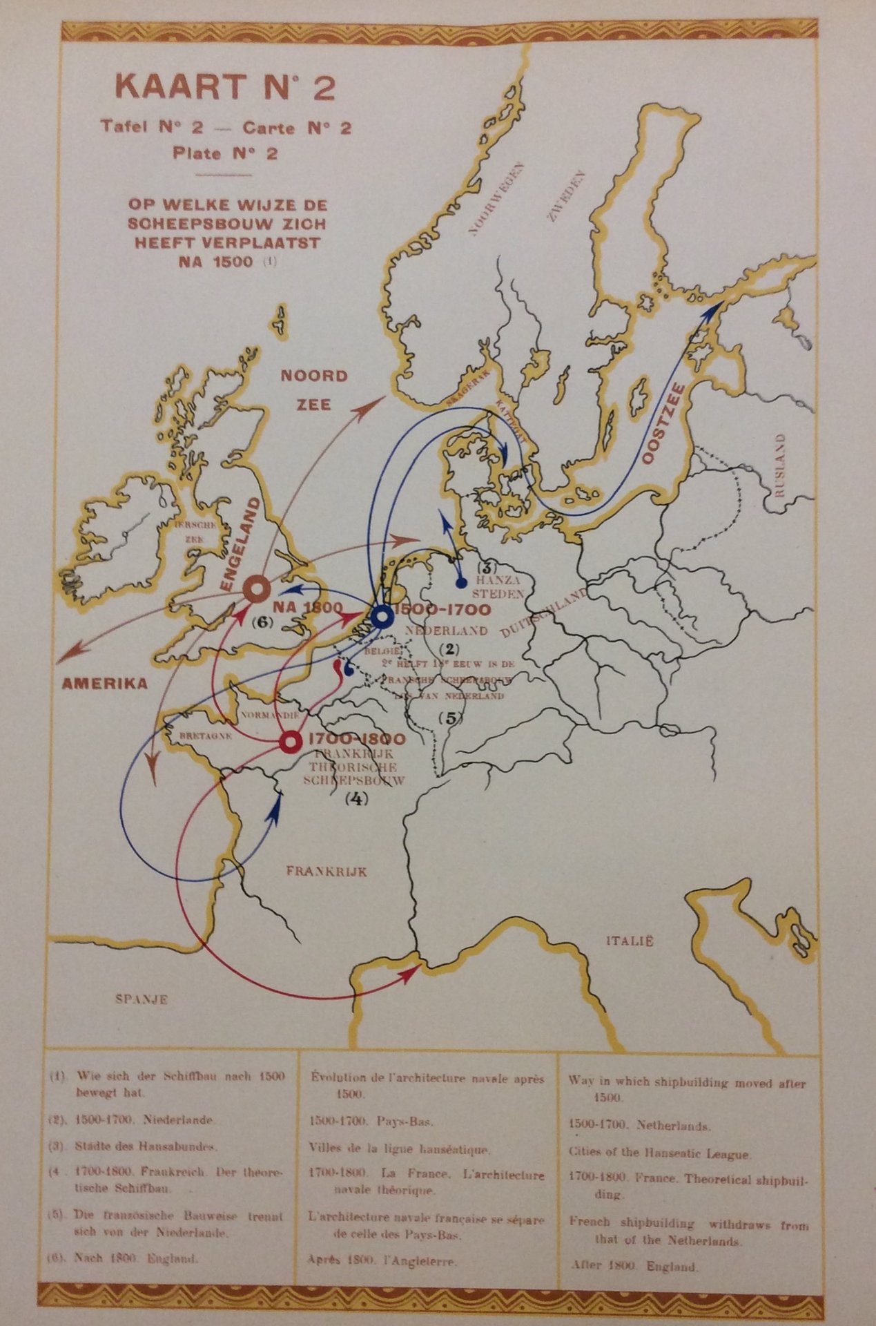 Album oblungo (mm. 260x340), 3 tomi (di cui 2 di tavole), mz. tela edit. (picc. manc.; 1 vol. con dorso e risg. rifatti), piatti in cartonato figur. (con abras.). L'opera è così composta:<br>Tomo 1°, di testo, pp. 112, ornato da deliziosi fregi, grandi capilett. figur. a vignetta e finali in tinta, con 7 tavole a colori - Tomo 2°: pp. (4), con 74 tavole in bianco e nero (foto e disegni) che riportano 277 figure relative al tipo di imbarcazioni che solcavano il Mar Mediterraneo dalle origini (Egiziani, Fenici, Greci e Romani) al XVIII secolo - Tomo 3°: pp. (4), con 100 tavole a colori, ciascuna con una o più figure che illustrano nei dettagli i vari tipi di barche o navigli descritti nel testo.Classification des bateaux (navires de guerre, marchands, bateaux de peche) - Description des types de bateaux (la Pinasse, le Flibot, la Hourque, le Stokker, l'Otter, le Kraak, la Prame d'Utrecht, ecc.) - Les Bovenlanders (Le Rhin. La Meuse. Bateaux de peche. Les bateaux Belges). Buon esemplare.
