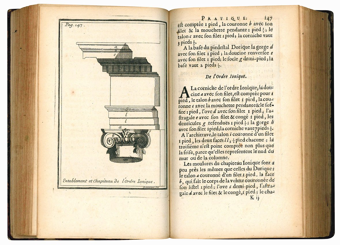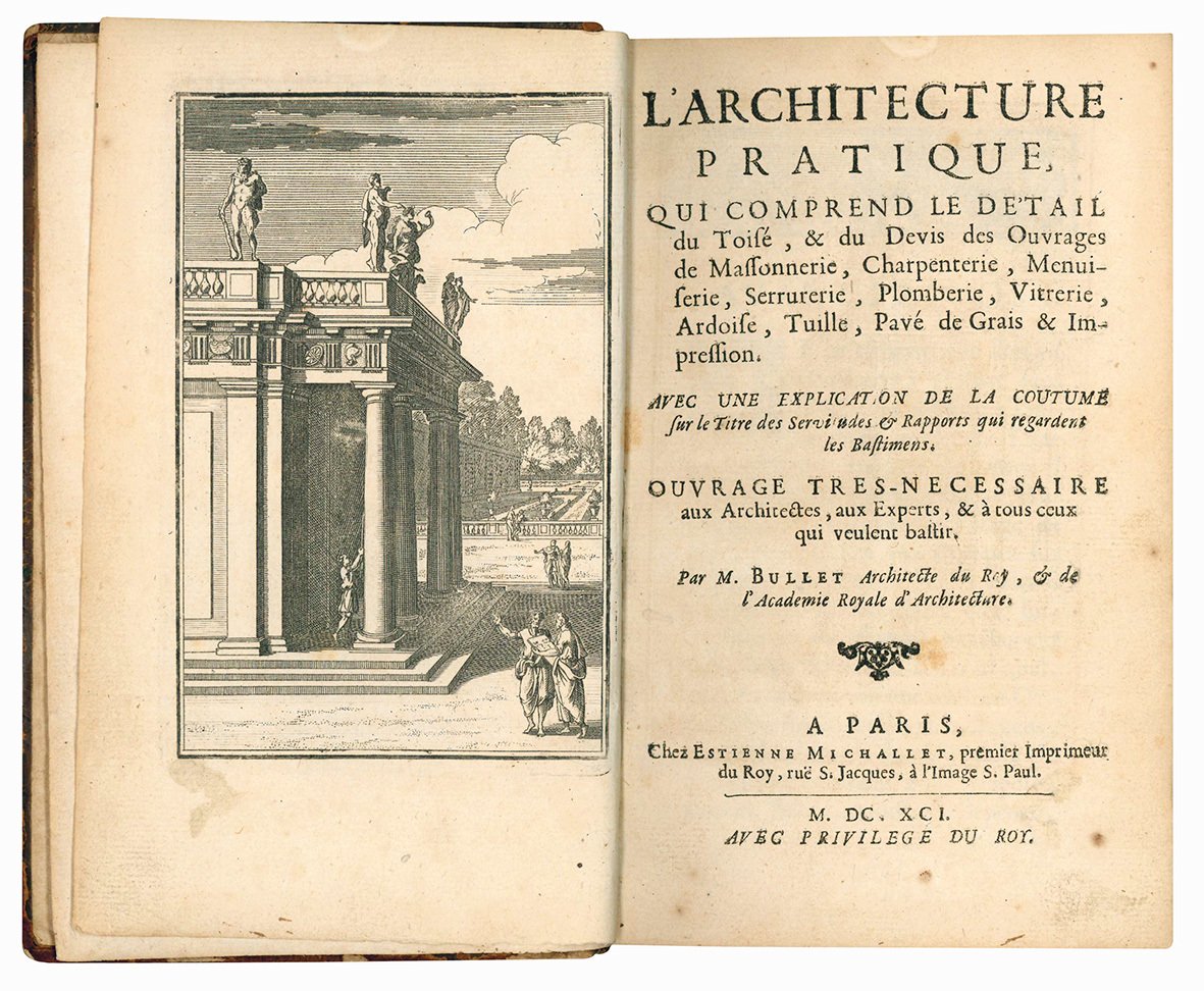 L'architecture pratique, qui comprend le détail du toisé, & du devis des ouvrages de massonnerie, charpenterie, menuiserie, serrurerie, plomberie, vitrerie, ardoise, tuille, pavé de grais & impression. Avec une explication de la Coutume sur le titre des servitudes & rapports qui regardent les bastimens [...]