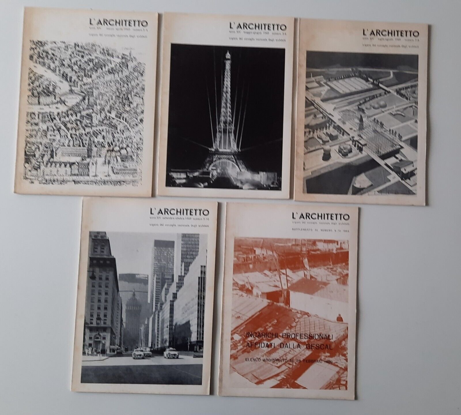 L'ARCHITETTO RIVISTA ORGANO CONSIGLIO NAZ. ARCHITETTI ANNATA 1968 N. 4 / 5 / 7-8 / 9-10In 4°, 4 numeri, legatura editoriale, copertina illustrata, ill. in b/n.In ottime condizioni, lievissimi segni alla copertina.
