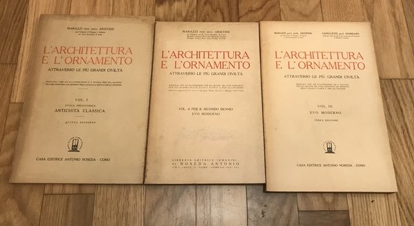 L'architettura e l'ornamento attraverso le più grandi civiltà, 3 voll ( Vol 1: Antichità classica. Vol 2: per il secondo biennio Evo moderno. Vol. 3: Evo moderno