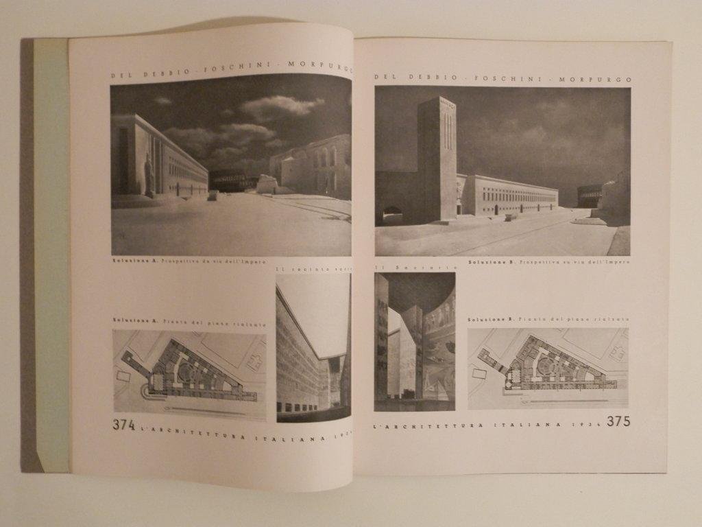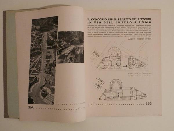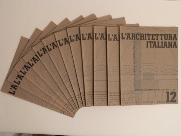 12 fascicoli di cm 32, legature originali in brossura perfettamente conservate. Interessantissima rivista di epoca fascista, completamente illustrata dai progetti dei più illustri architetti del periodo. Segnaliamo, tra gli altri, il numero XI dell'annata, in cui sono raffigurati tutti i progetti per il concorso del Palazzo del Littorio a Roma. Arricchiscono la riviste le numerose pubblicità di industrie italiane; tra cui la Olivetti che testimoniano l'attenzione della ditta per le nuove e più moderne architetture. . *** TUTTI I NOSTRI LIBRI SONO VISIBILI PREVIO CONTATTO MAIL O TELEFONO NELLA NUOVA SEDE DI MILANO: LIBRERIA COSMOPOLIS, VIA JOMMELLI, 22. ***