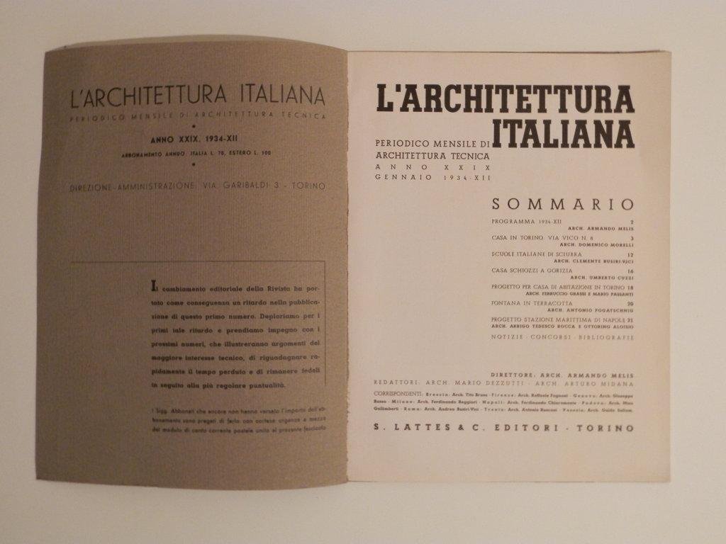 L'architettura italiana. Periodico mensile di architettura e tecnica. Annata 1934 completa.