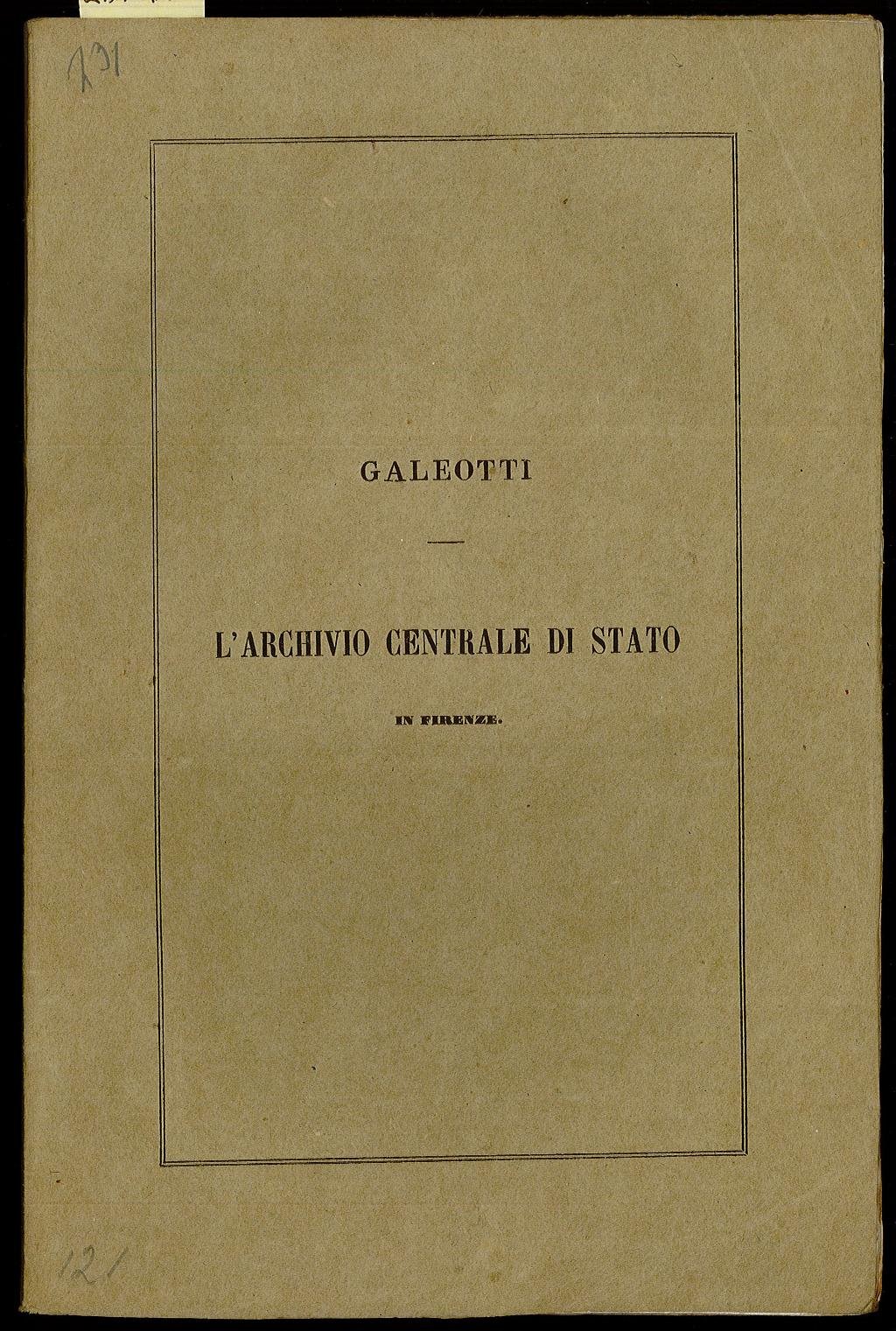 L’archivio centrale di Stato in Firenze (discorso di Galeotti Leopoldo)