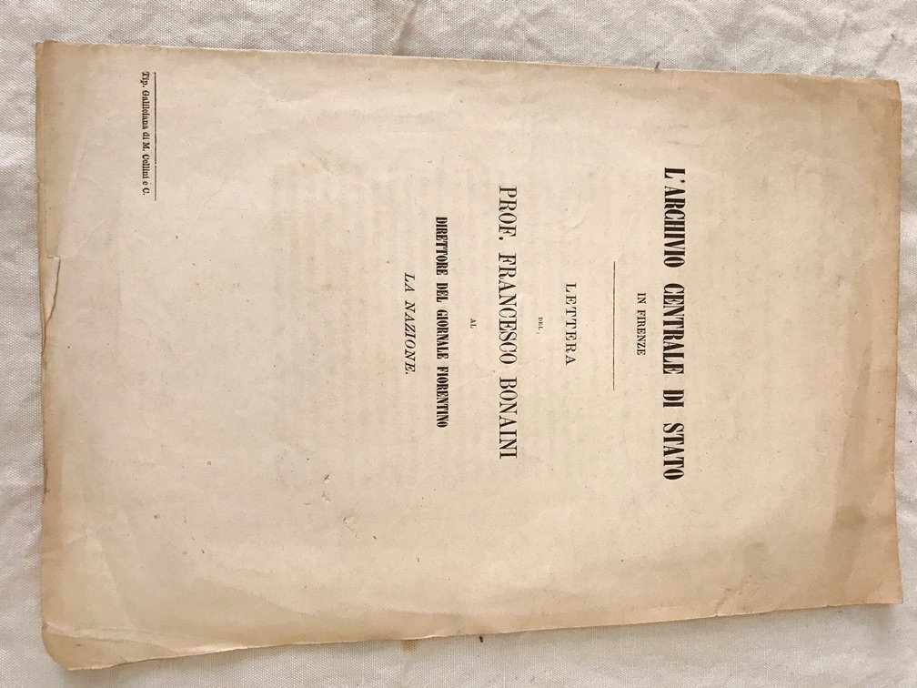L' ARCHIVIO CENTRALE DI STATO in Firenze. Lettera del Prof. Francesco Bonaini al Direttore del giornale fiorentino 'La Nazione'.