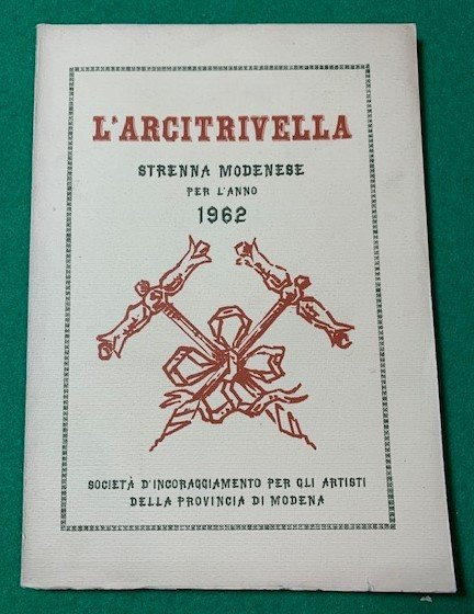 In 8° grande; 130, (2) pp. e 6 c. di tav. Brossura editoriale. In ottime condizioni di conservazione. Prima edizione di questa celebre strenna modenese. L'Arcitrivella, riprendendo la tradizione letteraria de "La Trivella" della ripresa della strenna ottocentesca, "La Trivella", uscì per tre anni consecutivi dal 1962 al 1963 con il contributo di celebri letterati ed artisti quali Guido Cavani, Antonio Delfini, Giovanni Cavicchioli, Giuseppe Graziozi, Mario Vellani Marchi, Benedetto Boccolari ecc. Brossura editoriale illustrata. Ottimo stato di conservazione. Non comune, due soli esemplari censiti in ICCU per questa prima annata dell'Arcitrivella.