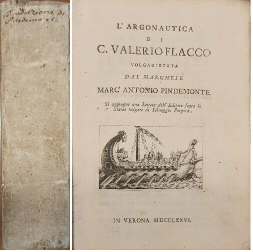 L'ARGONAUTICA di. volgarizzata dal Marchese Marc'Antonio Pindemonte. Si aggiunge una Lettera dell'Editore sopra lo Stazio volgare di Selvaggio Porpora.
