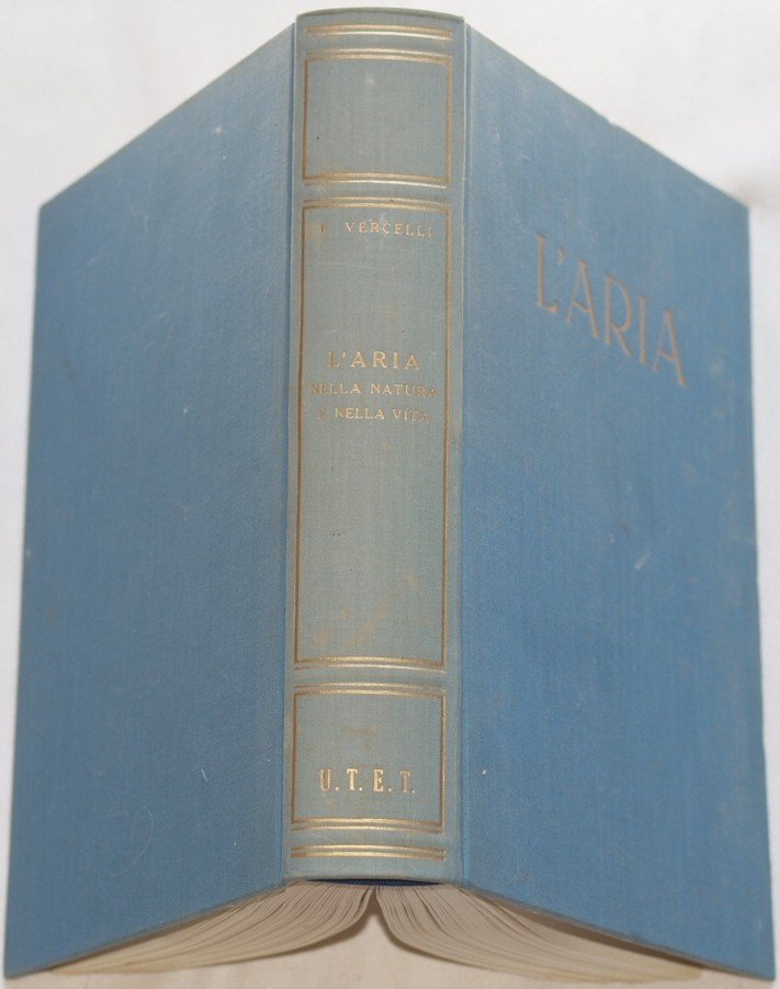 In 8. Dim. 26,5x20 cm. Pp. XXIII+718. Peso Kg. 2,400. Bel volume del 1952 sull'aria nella natura e nella vita scritto da Francesco Vercelli (1883-1952) professore nell'Accademia militare di Torino, addetto dopo la prima guerra mondiale all'Osservatorio geofisico di Trieste di cui fu direttore fino alla morte, professore all'Università di Padova. Vercelli compì notevoli ricerche oceanografiche tra le quali campagne nello Stretto di Messina. All'interno sono presenti due tavoli a colori e 621 figure nel testo. Tra gli argomenti trattati: L'atmosfera, La pressione dell'aria, Temperatura termometri energia raggiante, I regolatori della temperatura nell'aria, I fattori della temperatura e dell'equilibrio dell'aria, Il moto dell'aria, Classificazione dei venti, L'aria e l'acqua: meteore acquee, Circolazione atmosferica e perturbazioni, Fluttuazioni, Previsione del tempo, Fatori climatici, Aria e luce, Aria e suono, Aria e elettricità, Principi di bioclimatologia e meteoropatologia, Aria presso il suolo, Utilizzazione dell'aria, Le vie dell'aria, Sviluppi e tendenze dell'aviazione moderna ecc. In ottime condizioni. Copertina in tela editoriale in ottime condizioni generali con lievi usure ai margini e dorso. Legatura in buone condizioni. All'interno le pagine si presentano in ottime condizioni con rare fioriture. Beautiful volume of 1952 about air in nature and life written by Francesco Vercelli (1883-1952) teacher in the military academy of Turin, worker after the first world war of the Geophysical Observatory of Trieste of which he was director until his death, teacher in the University of Padova. Vercelli made huge ocean researches between them Campaigns in the Stretto di Messina. Isndie there are two coloured planches and 621 figures in the text. Between the issues treated: Atmosphere, Pression of the air, Temperature termometers energy, Regulators of temperature in the air, Movement of air, Classification of winds, Air and water: water meteors, Atmospheric circulation, Fluttuations, Prevision of climate, climatic factors, Air and light, Air and sound, Air and electricity, Principles of bioclimatology and meteoropatology, Air in the sole, Usage of air, Routes of air, Development and trends of modern aviation etc. In very good conditions. Editorial cloth cover in very good general conditions slightly worn in the edges and spine. Binding in good conditions. Inside pages are in very good conditions with occasional foxings.