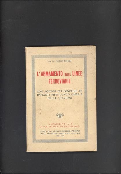 IN 16°, pp.214 + INDICI, COPERTINA EDITORIALE CON TITOLO ROSSO ENTRO CORNICE.<BR>NUMEROSE FIGURE, TAVOLE E TABELLE in b/n. COMPENDIO DELLE ISTRUZIONI IN VIGORE AD USO DEL PERSONALE DI LINEA DEL SERVIZIO LAVORI DELLE FERROVIE DELLO STATO.<BR>SUPPLEMENTO N.16, A " LA TECNICA PROFESSIONALE ", PUBBLICATO A CURA DEL COLLEGIO NAZIONALE DEGLI INGEGNERI FERROVIARI ITALIANI. OTTIMA CONSERVAZIONE. ID 3043