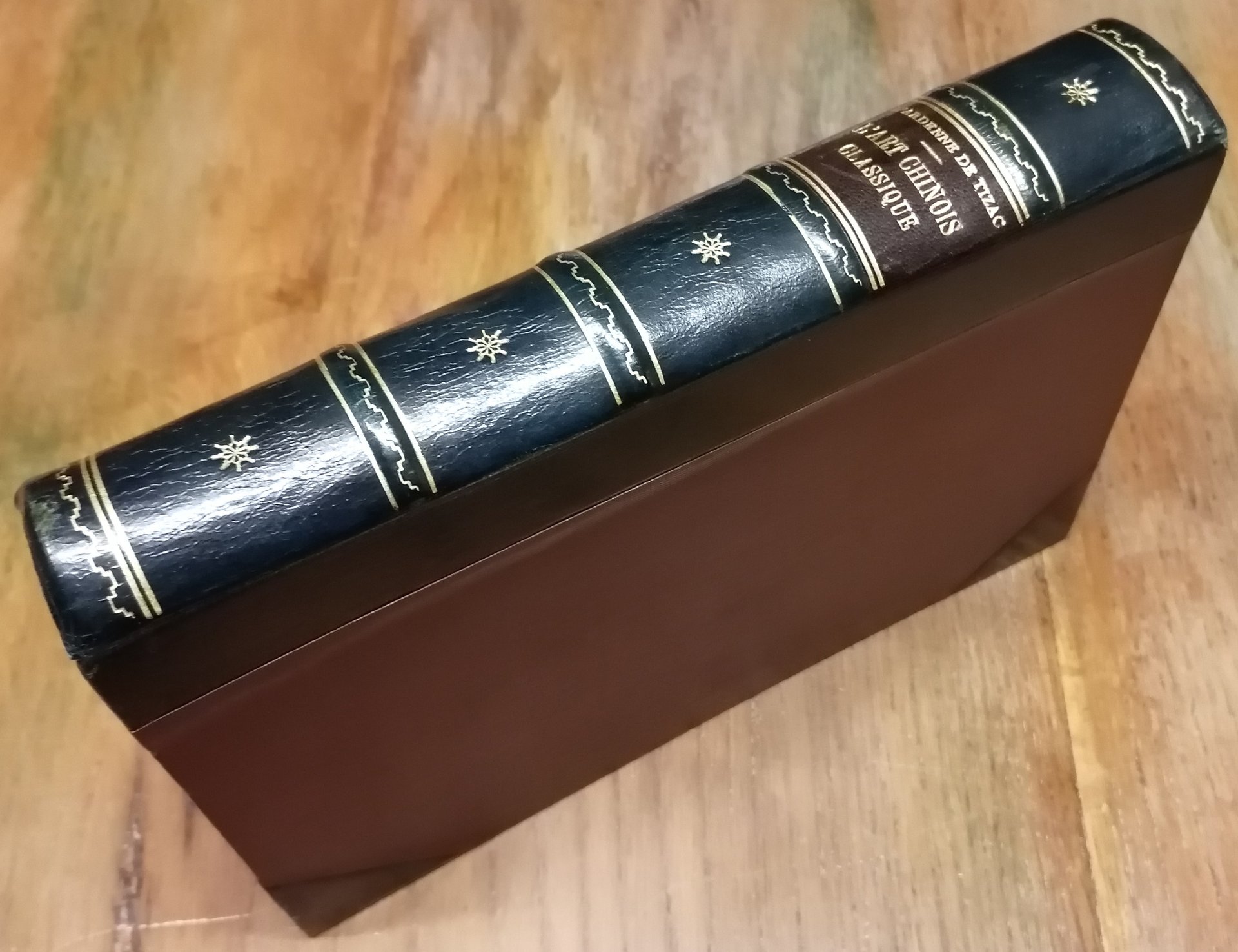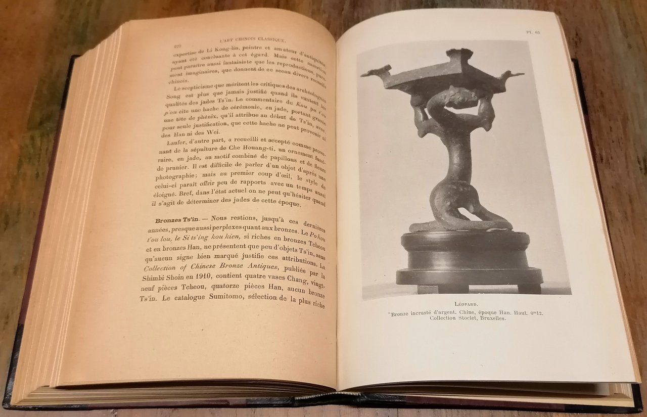 (Cina - Arte cinese) In 8°, legatura coeva in mezza pelle blu scuro con punte, dorso a 4 nervi con titolo, filetti ornati e fregi impressi in oro, pp. (4),364, con 30 figure nel testo e 162 illustrazioni in bianco e nero su tavole fuori testo. Henri d'Ardenne de Tizac (1877 - 1932) fu il curatore del Museo Cernuschi di Parigi dal 1905 al 1932. Alcune discrete sottolineature a matita su poche pagine, per altro bell'esemplare, ben conservato.