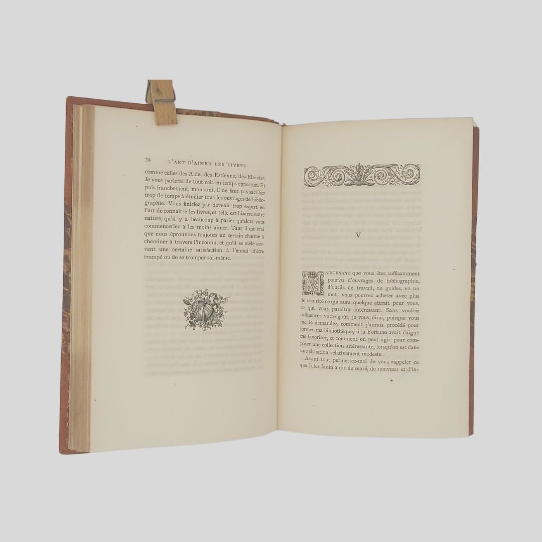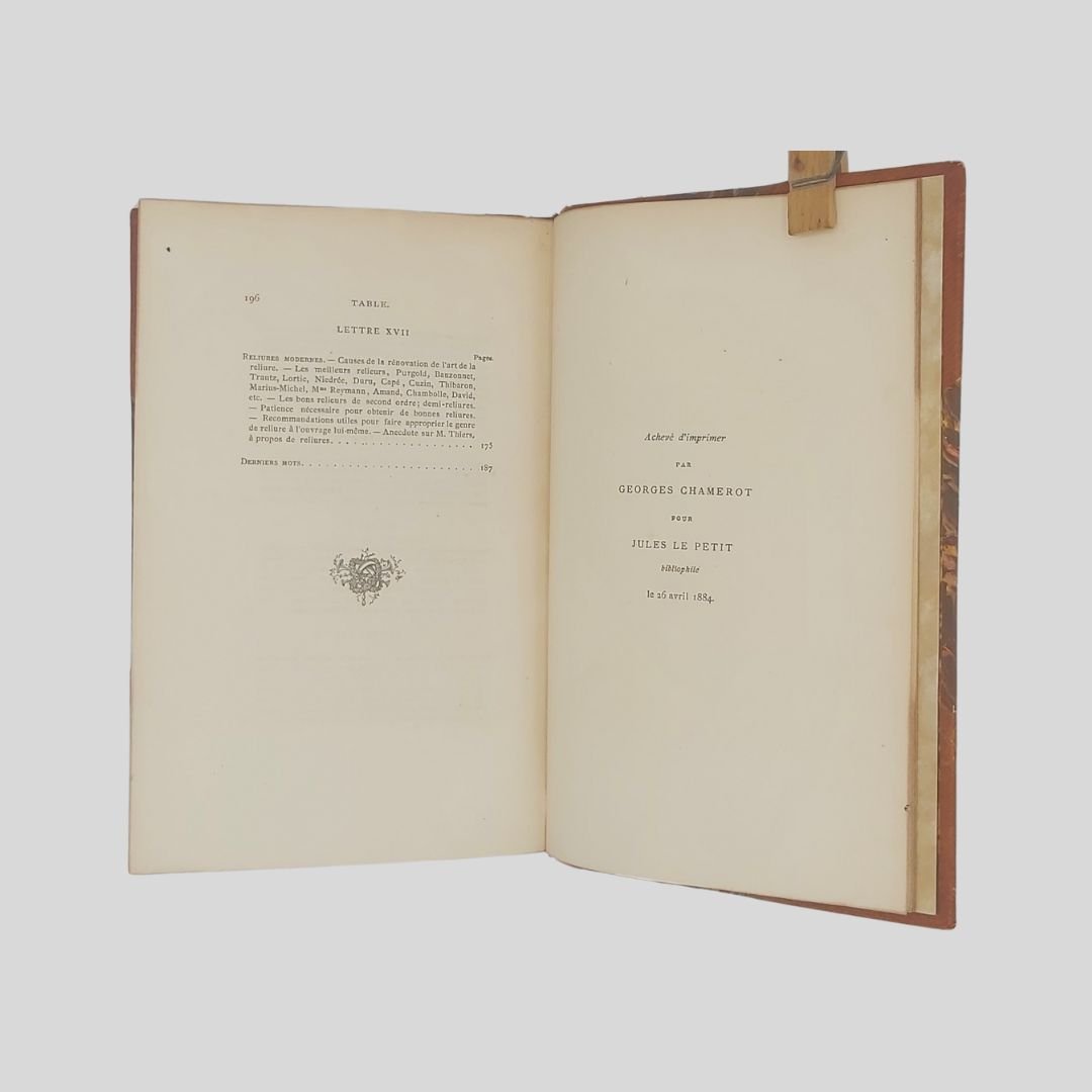 In-8° (cm 19,5×12), pp.IV-196 ,(2).Titoli in rosso e nero e vignetta al frontespizio. Con una piccola incisione all’acquaforte di Alfred Gérardin a mo’ di prefazione. Fregi tipografici, capilettera e finalini. Legatura coeva in mz. pelle a punte, titoli in oro al dorso a 6 scomparti, nervetti, piatti e sguardie marmorizzate. Ex libris. Graziosa opera di grande eleganza.Tracce d’uso e spellature soprattutto al dorso, ma interno in ottime condizioni.