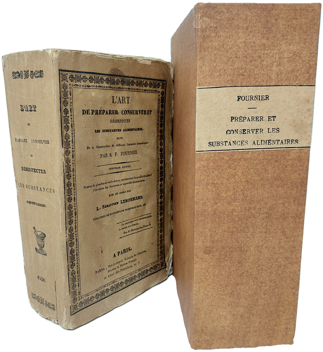 >in-8, pp. (VI), 648, 3 tavole incise ripiegate in fine. Brossura editoriale in cartoncino avana con titolo a stampa sul primo piatto e al dorso. Conservato in astuccio moderno in tela. Seconda edizione (la prima del 1818). Nella prima parte sono trattate le proprietà e le ricette degli alimenti vegetali ed animali. La seconda parte corncerne i combustibili, fornelli e recipienti di cottura. Opera copiosa, molto interessante e non comune. Esemplare a pieni margini assai bello e genuino. Bitting 164. Manca a Vicaire.