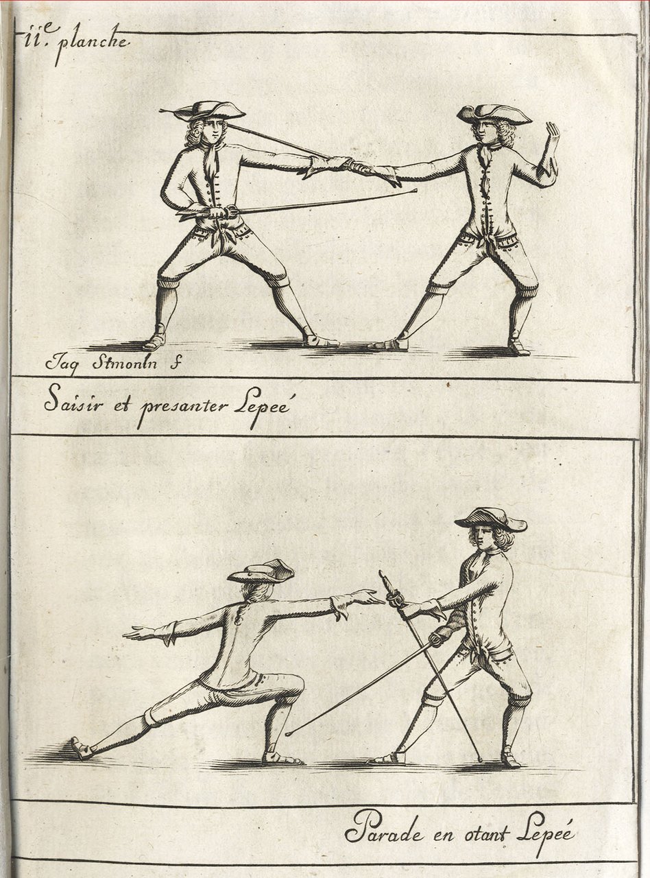 L'art en fait d'armes, ou de l'épée seule, avec les attitudes, dédié à monsieur le Comte d'Armaignac; (legato con:) ID. Questions sur l'art en fait d'armes, ou de l'épée dédiées à monsieur le Duc de Bourgogne.