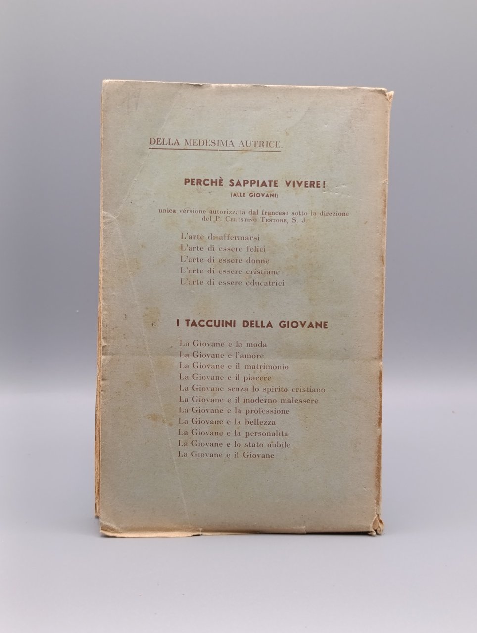 Collana: perché sappiate vivere! Condizioni accettabili: segni d'usura e del tempo, ingiallimento e legatura precaria