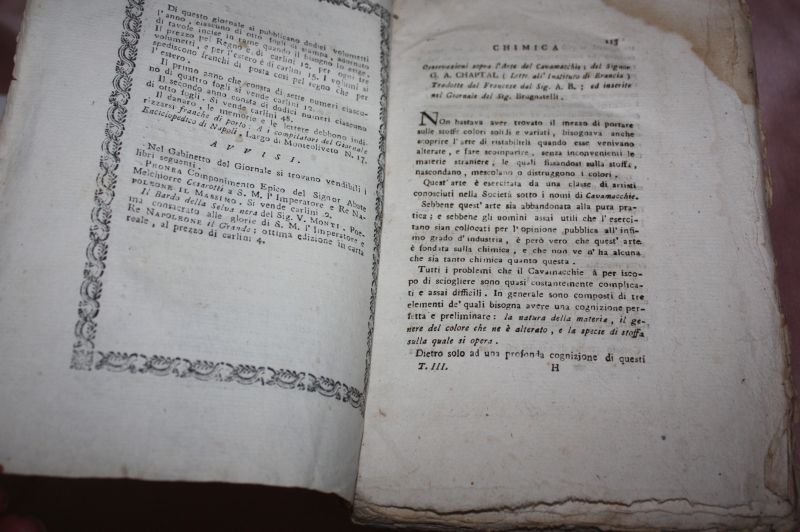 L'ARTE DEL CAVAMACCHIE GA.CHAPTAL GIORNALE ENCICLOPEDICO DI NAPOLI NUM 8 AGOSTO 1808