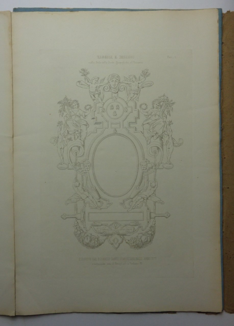 Cartelle cartacee con 14 tavole di 40x58 cm, numerate, su carta pesante, precedute da 6 pagine (titolo e descrizione dell'opera). Le due cartelle cartacee sono quelle delle dispense in cui venne pubblicata la pubblicazione. Opera completa, con tutte le sue tavole. Queste targhe vaticane furono eseguite dal perugino Ignazio Donati e da altri allievi dello Zuccari. Ottime condizioni.