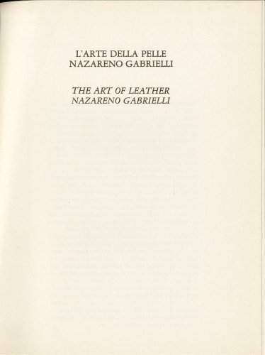 L'arte della pelle. Nazareno Gabrielli.