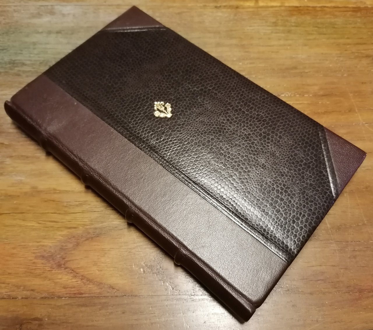 (Gastronomia - Culinaria - Liquori - Gelateria - Estratti di frutta) In 16° grande (cm 18,7 x 11,5), legatura novecentesca in mezza pelle marrone con punte, dorso muto a 4 nervi, ai piatti carta uso serpente color testa di moro con piccolo fregio centrale impresso in oro, conservata la prima di copertina della brossura originale, pp. 177,(1), con una tavola in antiporta (Ghiacciaia e Fontana per conservare il ghiaccio). Rari punti di ossidazione, esemplare solido e ben conservato.