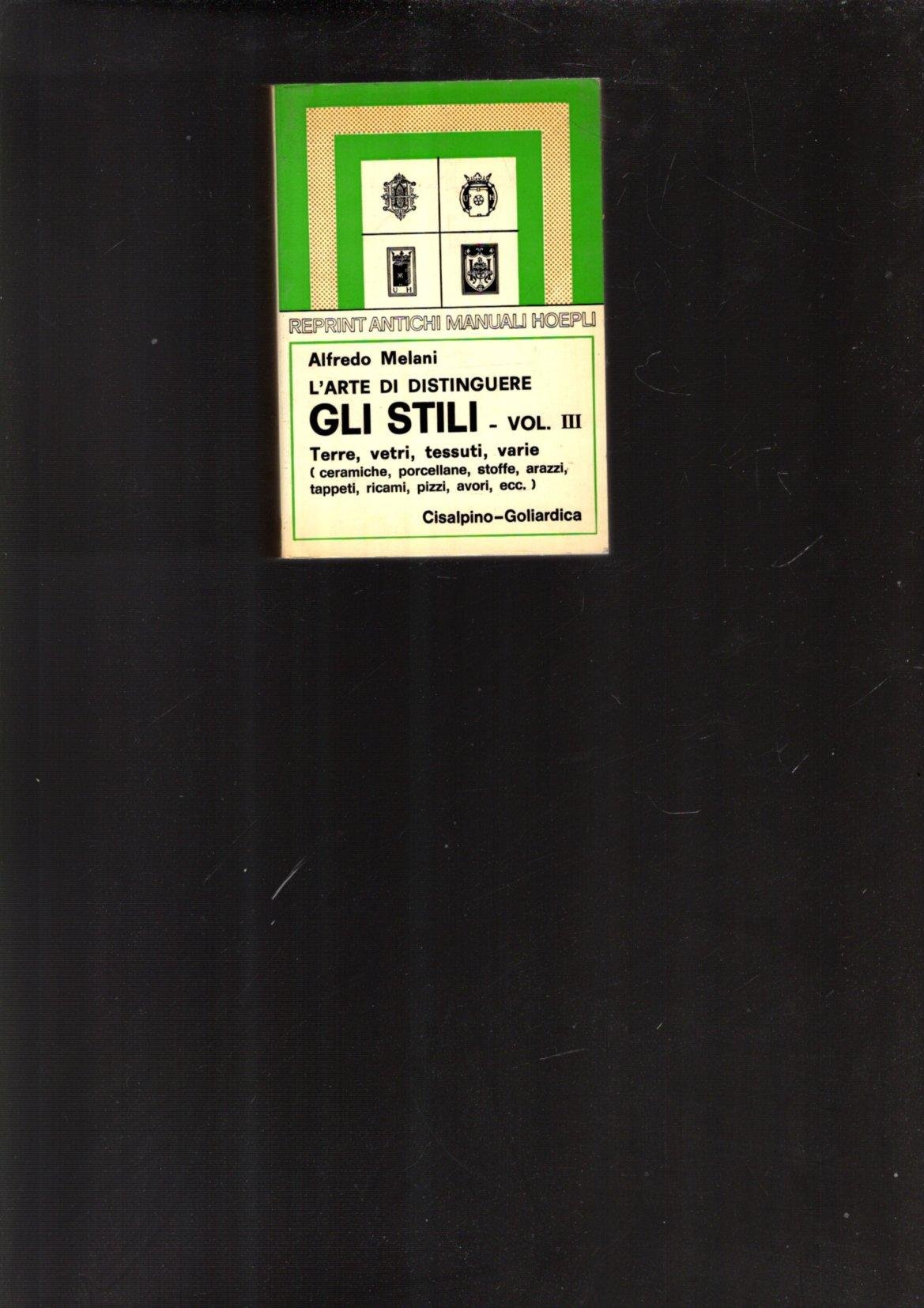 L'arte di distinguere gli stili (rist. anast. 1928/2). Terre, vetri, tessuti, varie (Vol. 3)**