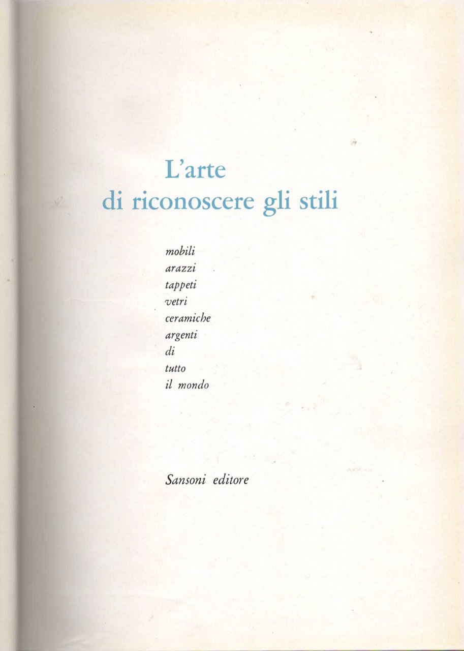 L'arte Di Riconoscere Gli Stili / Mobili-Arazzi-Tappeti-Vetri-Ceramiche-Argenti Di Tutto Il Mondo