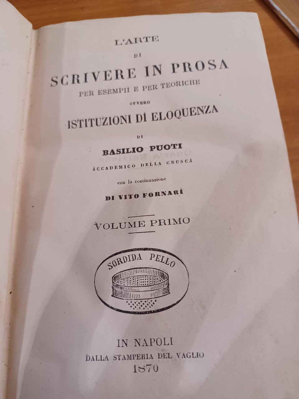 Per esempii e per teoriche, ovvero Istituzioni di eloquenza. Con la collaborazione di V. Fornari. Volume primo. In condizioni accettabili.