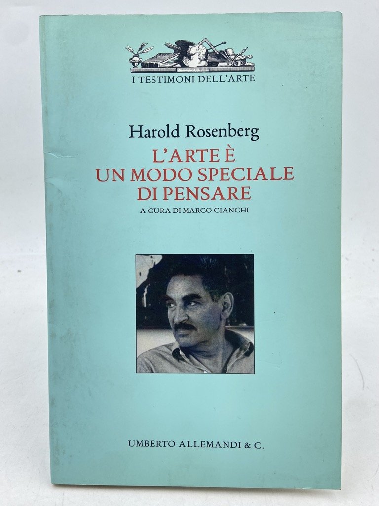 Brossura editoriale illustrata, cm 19.5 x 12, pp 76 (4). Volumetto della collana diretta da Mina Gregori, I testimoni dell’arte, dedicato al critico americano Harold Rosenberg, che coniò il termine «action painting». A cura di Marco Cianchi, con un’intervista di Melvin M. Tumin ad Harold Rosenberg (Che cos’è l’arte), un’intervista di Rosenberg a Willem de Kooning, oltre al breve scritto che da il titolo al volume.