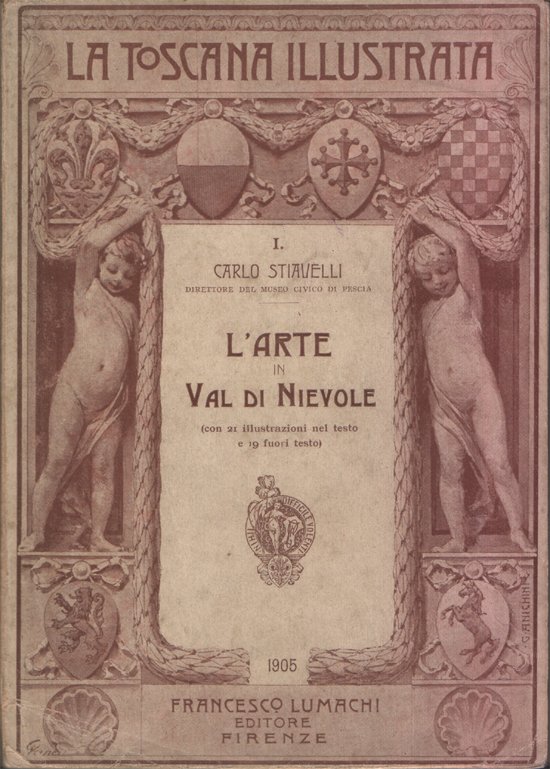 In-16° (cm 17,3x12,3), pp. 7, (1), 159, (1), copertina editoriale illustrata con normali segni d'uso, in particolare al dorso. Con 21 illustrazioni in bianco e nero nel testo e 19 tavole di llustrazioni fuori testo, in bianco e nero e in "sanguigna". Una piccola mancanza nella parte inferiore del dorso, per il resto buon esemplare. La pubblicazione descrive le più importanti opere d'arte e i principali monumenti artistici di Altopascio, Bagni di Montecatini, Bellavista, Borgo a Buggiano, Buggiano, Castelvecchio, Cerreto Guidi, Colle Buggianese, Collecchio, Collodi, Costa, Cozzile, Lamporecchio, Malocchio, Massa di Cozzile; Monsummano, Monsummano Alto, Monte a Pescia, Montecarlo, Montecatini Alto, Montevettolini, Pescia, Pietra Buona, San Lorenzo a Cerreto, San Piero in Campo, Serravalle, Sorana, Stignano, Uzzano, Veneri, Villa Basilica, Vivinaia. Contiene inoltre, a pagina 143, delle "Indicazioni pratiche per il foretiero".
