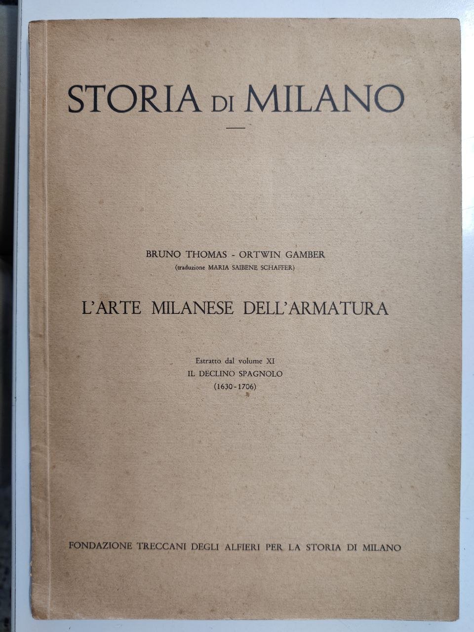 L'ARTE MILANESE DELL'ARMATURA. ESTRATTO DAL VOLUME XI IL DECLINO SPAGNOLO (1630-1706). - Traduzione Maria Saibene Schaffer.