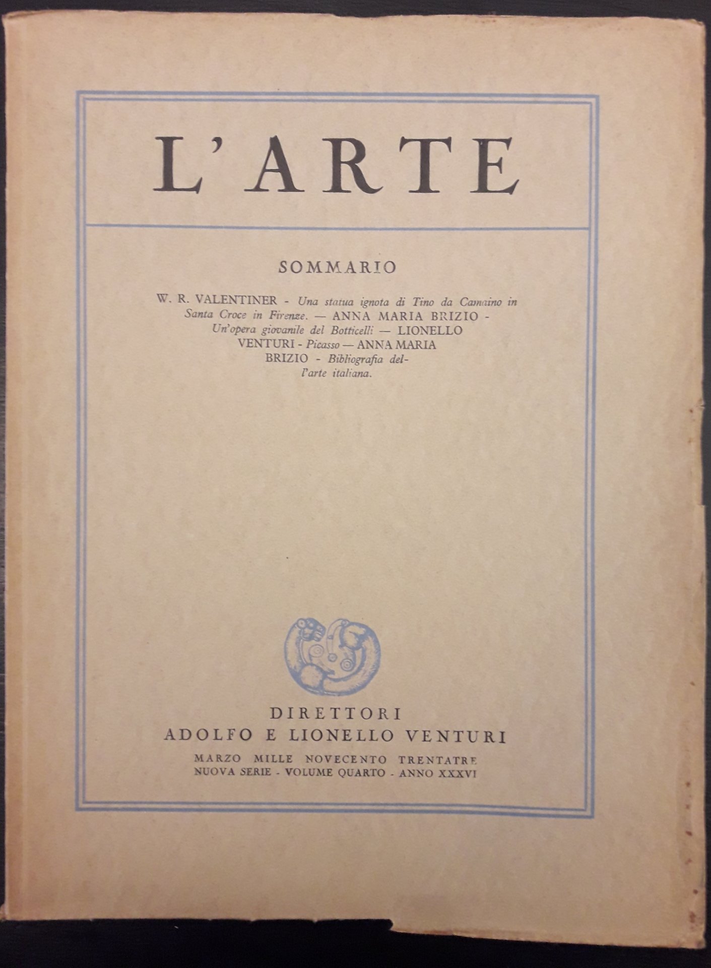 L'Arte. Rivista trimestrale di storia dell'arte medievale e moderna. Direttori Adolfo e Lionello Venturi