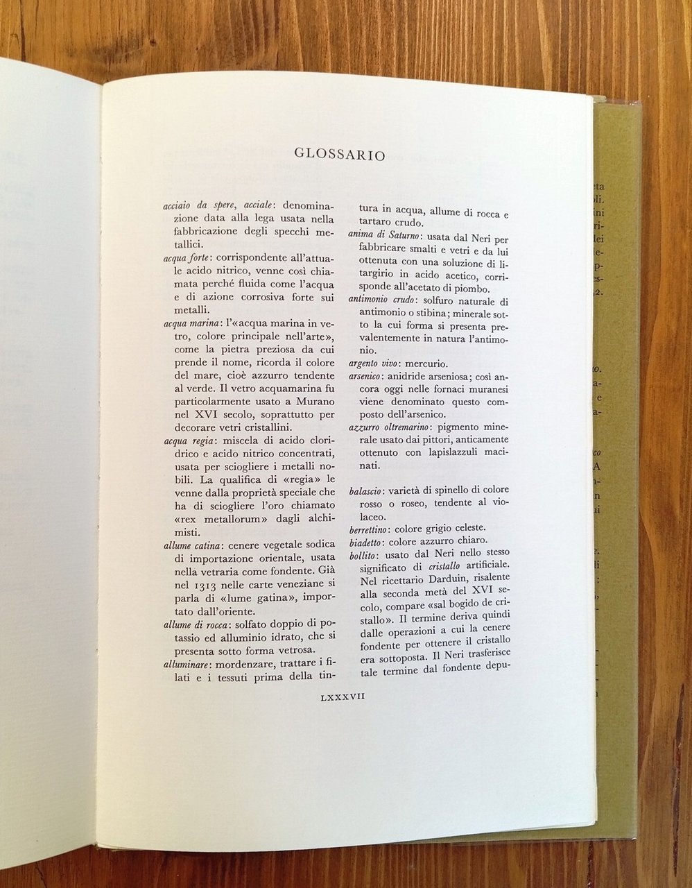 Collana "Libri Rari. Collezione di ristampe con nuovi apparati", IV. Edizione a cura di Rosa Barovier Mentasti - Volume in copertina rigida editoriale con sovraccoperta, XCVIII + 118 pagine con IX tavole in nero fuori testo. Riprodotta in anastatica, al centro del volume, l'intera edizione del 1612 (Stamperia de' Giunti, Firenze). Glossario e indice in fine. Impresso dalla Stamperia Valdonega su carta della Cartiera Ventura di Cernobbio in 1300 esemplari di cui 700 non venali. Dorso lievemente brunito, peraltro copia eccellente.