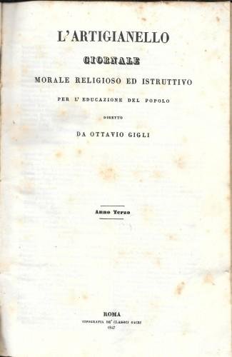 L'Artigianello. Giornale morale religioso ed istruttivo per l'educazione del popolo. Anno terzo
