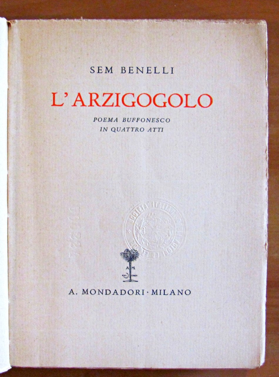 L'ARZIGOGOLO - POEMA BUFFONESCO IN QUATTRO ATTI