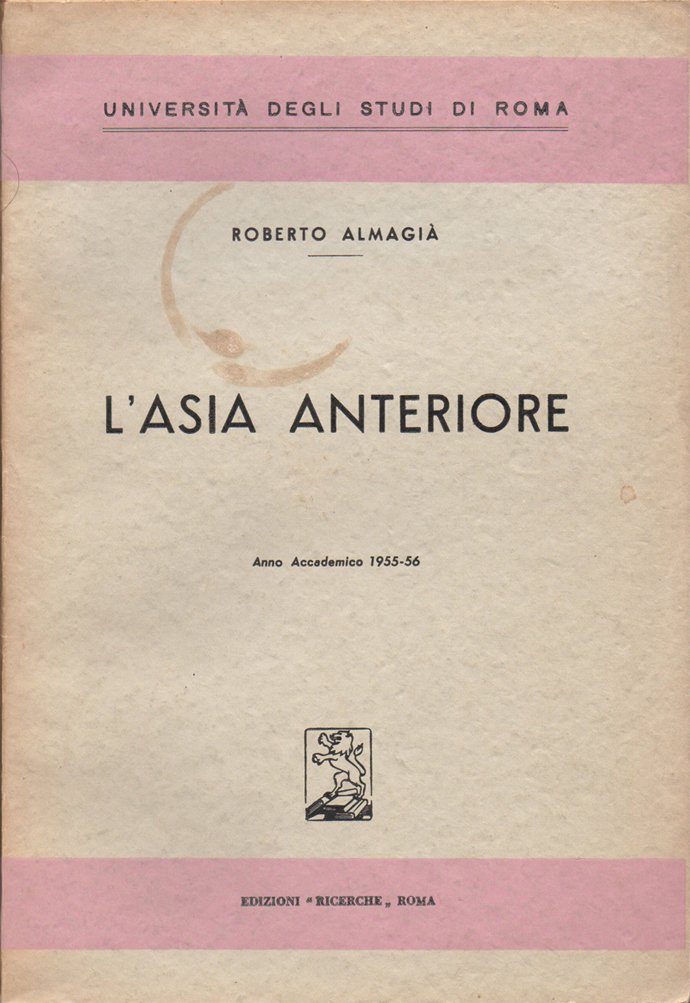In-8° (24,2 x 16,6 cm) pp. 152, (2), copertina editoriale con qualche segno d'uso, in particolare: alla copertina anteriore, macchia, color beige, a forma, all'incirca, di corona semicircolare; dorso leggermente scurito, per probabile esposizione alla luce. Piccole macchie d'umido al taglio di testa, per il resto, ben conservato. Corso tenuto all'Università degli Studi di Roma nell'anno accademico 1955-1956. Indice: La Turchia. La Siria e la Palestina. L'Arabia e l'Irak. La Persia e l'Afganistan.