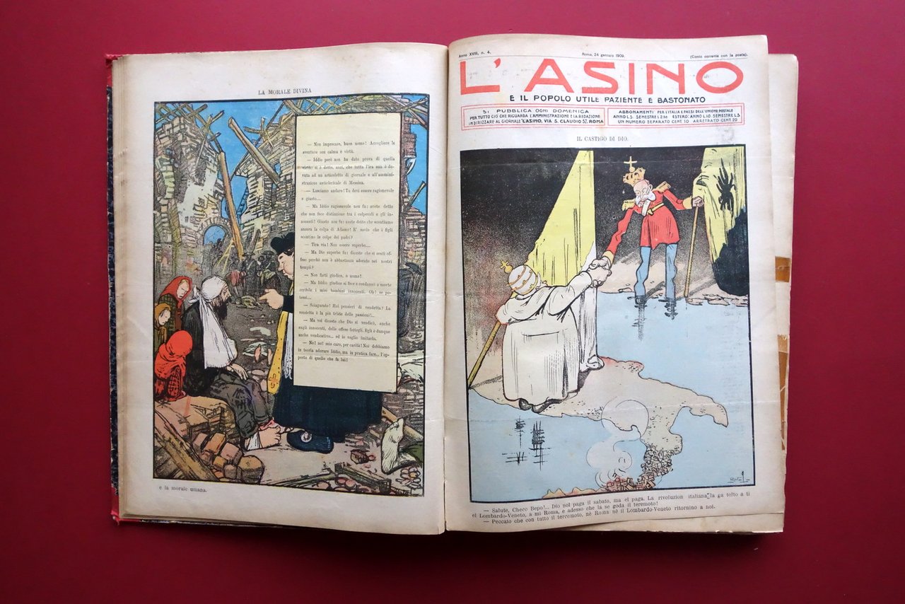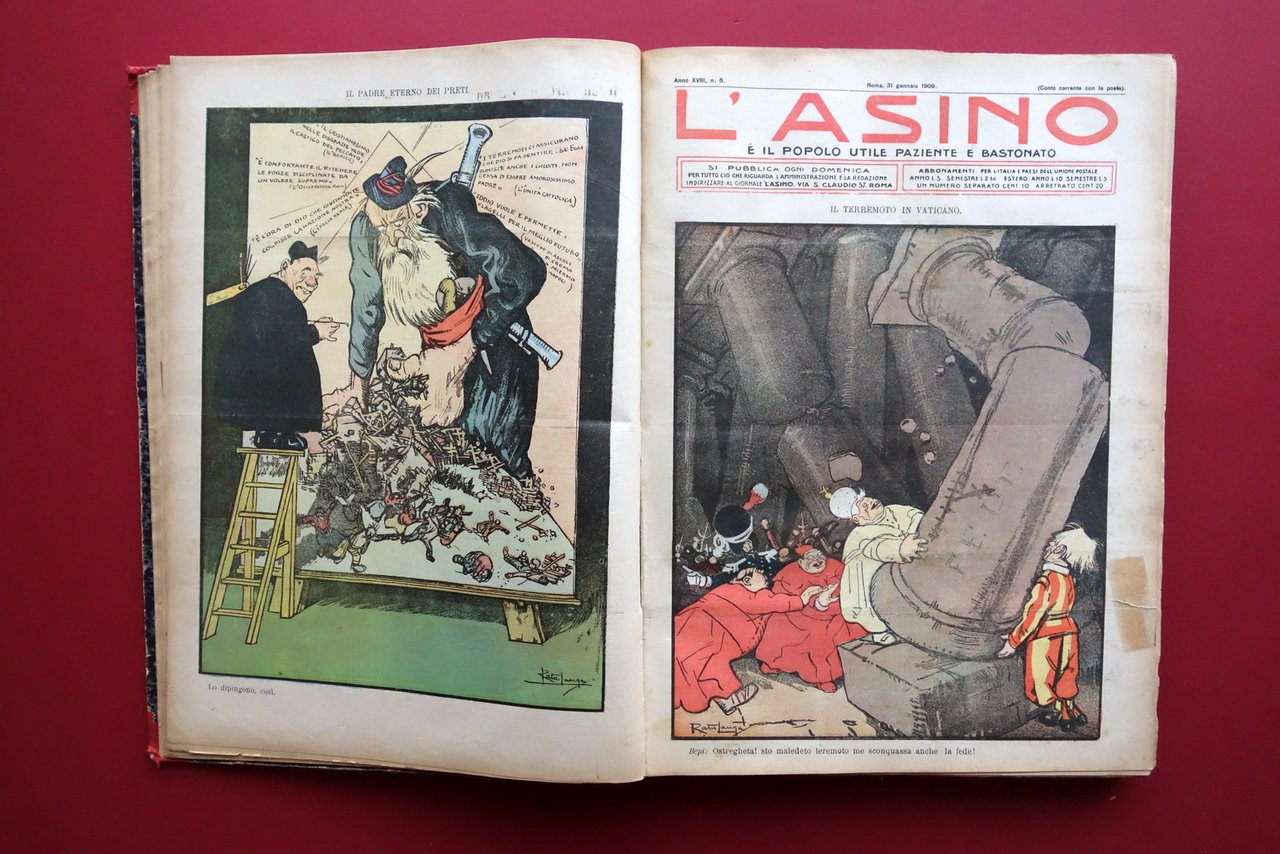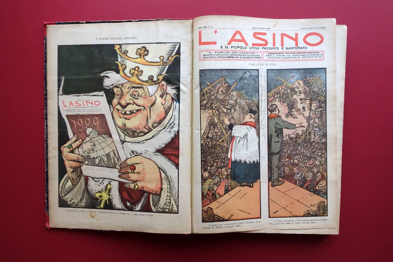 L'Asino Anno XVIII 52 Numeri Annata Completa 1909 Terremoto Messina Socialismo