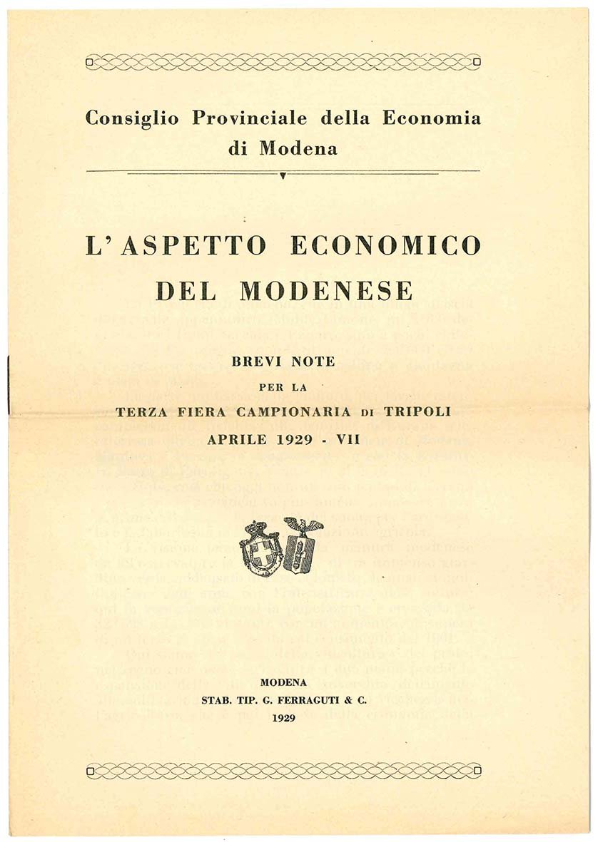 L'aspetto economico del Modenese. Brevi note per la terza fiera campionari di Tripoli aprile 1929-VII